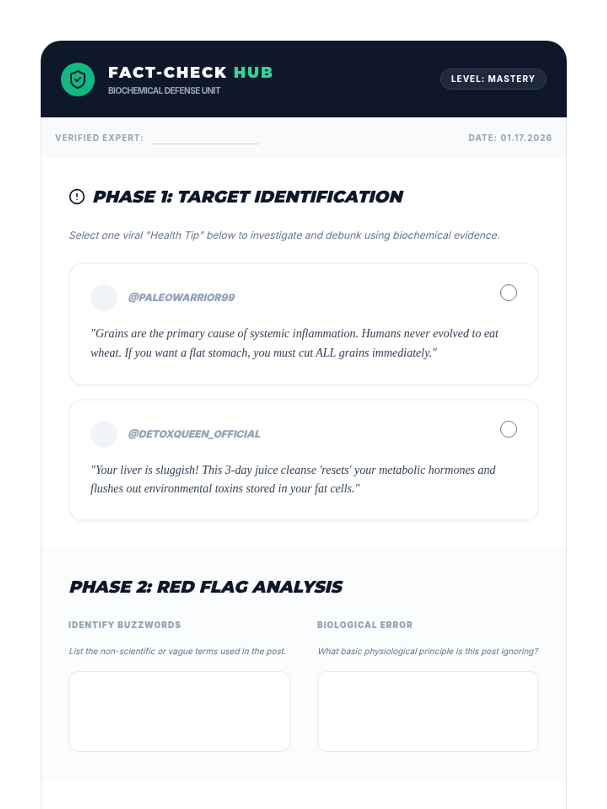 This advanced 11th-grade nutrition sequence moves beyond basic food groups to explore biochemical metabolism, micronutrient bioavailability, energy expenditure mathematics, and strategic meal planning for diverse populations. Students transition from passive consumers to critical nutritional analysts through case studies and myth-busting challenges.