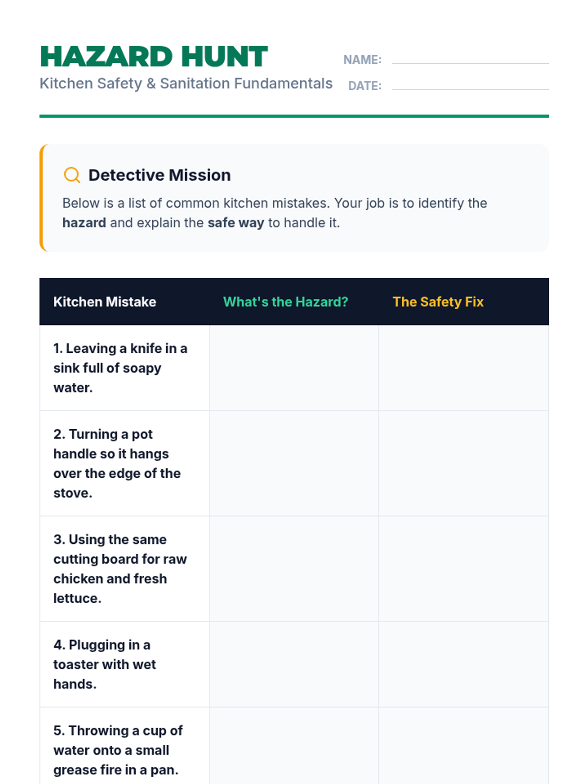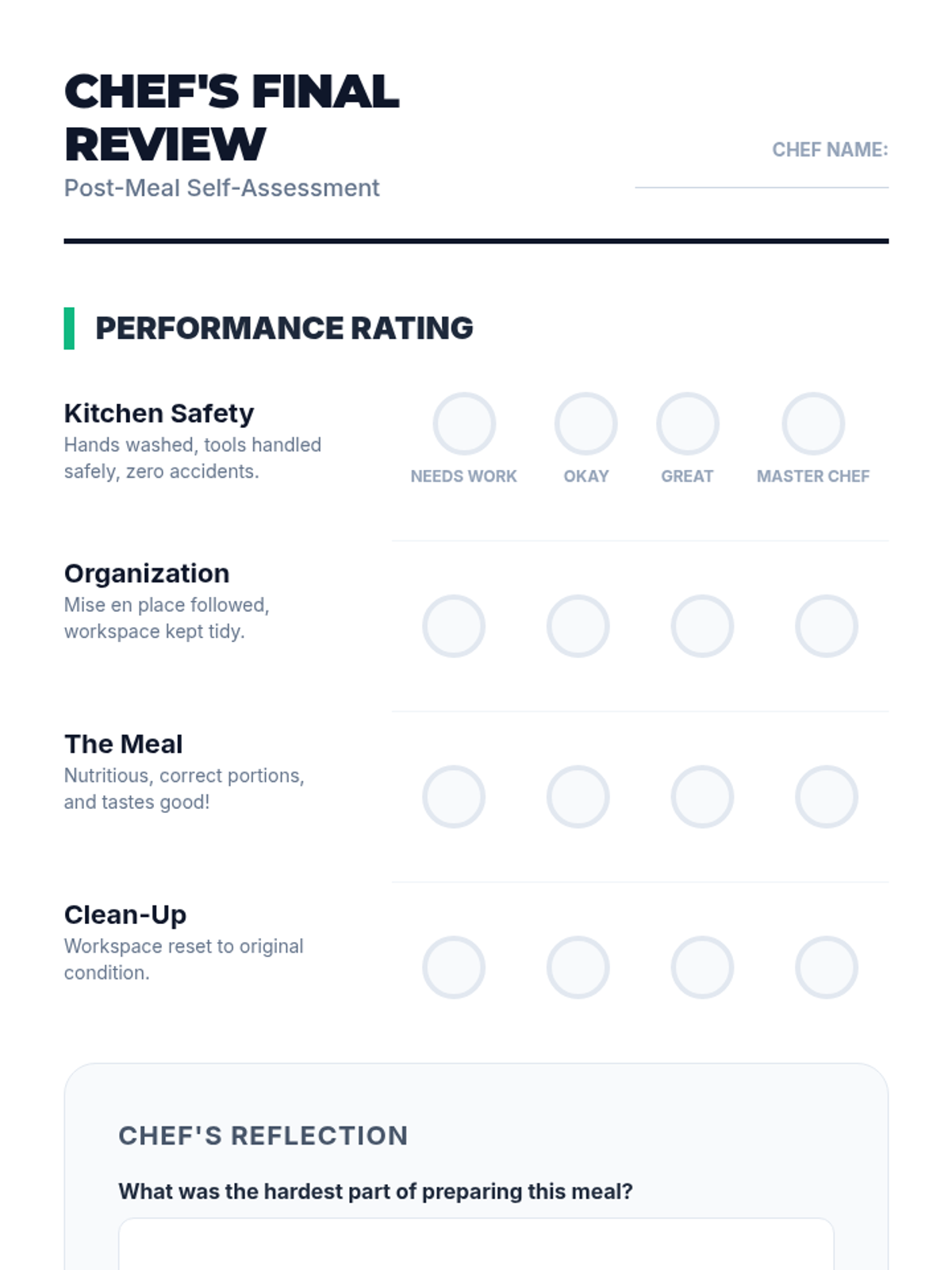 This transition planning sequence for 11th-grade students focuses on independent living skills, specifically nutritional planning and safe food preparation. Students will progress through kitchen safety, nutrition literacy, meal planning, food storage, and practical cooking skills.