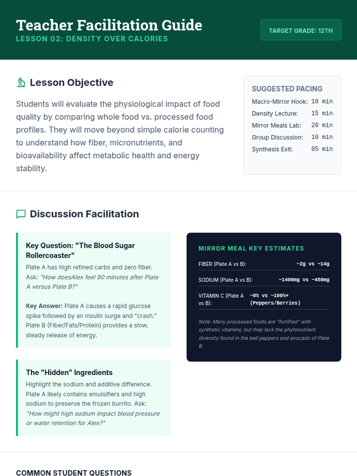 A 2-day condensed unit for 10th-grade sports nutrition focused on identifying industry "Red Flags" and expert consensus for supplement safety. Students complete a digital Label Hunt and a final synthesis assessment to demonstrate mastery.