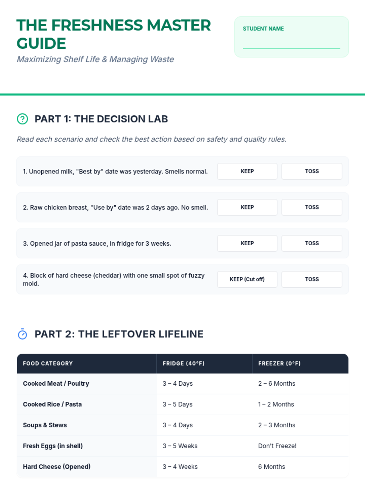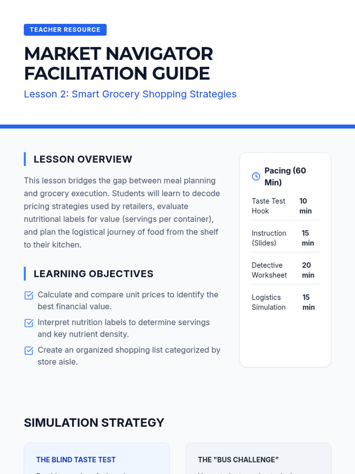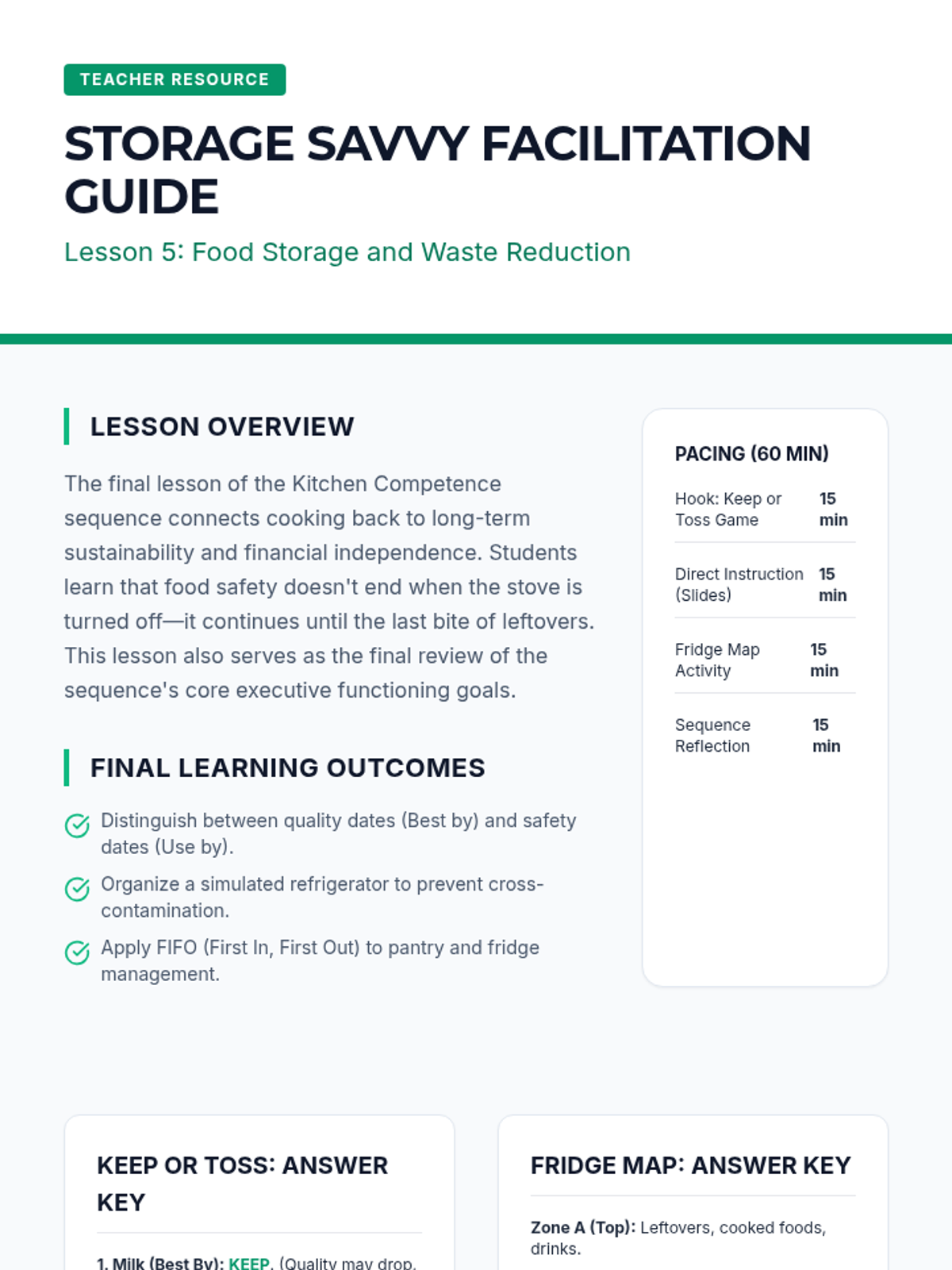 This sequence guides undergraduate students through the essential skills of nutritional planning, grocery shopping, kitchen safety, and basic meal preparation. It emphasizes executive functioning, budget management, and health-conscious decision-making for independent living.