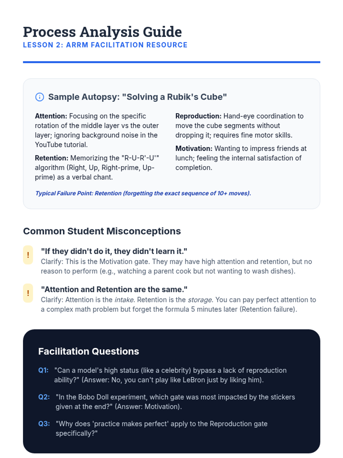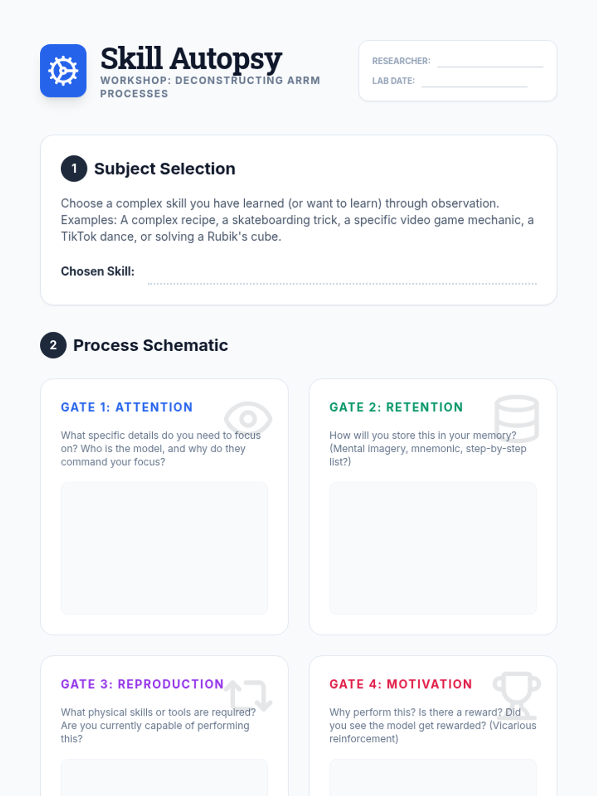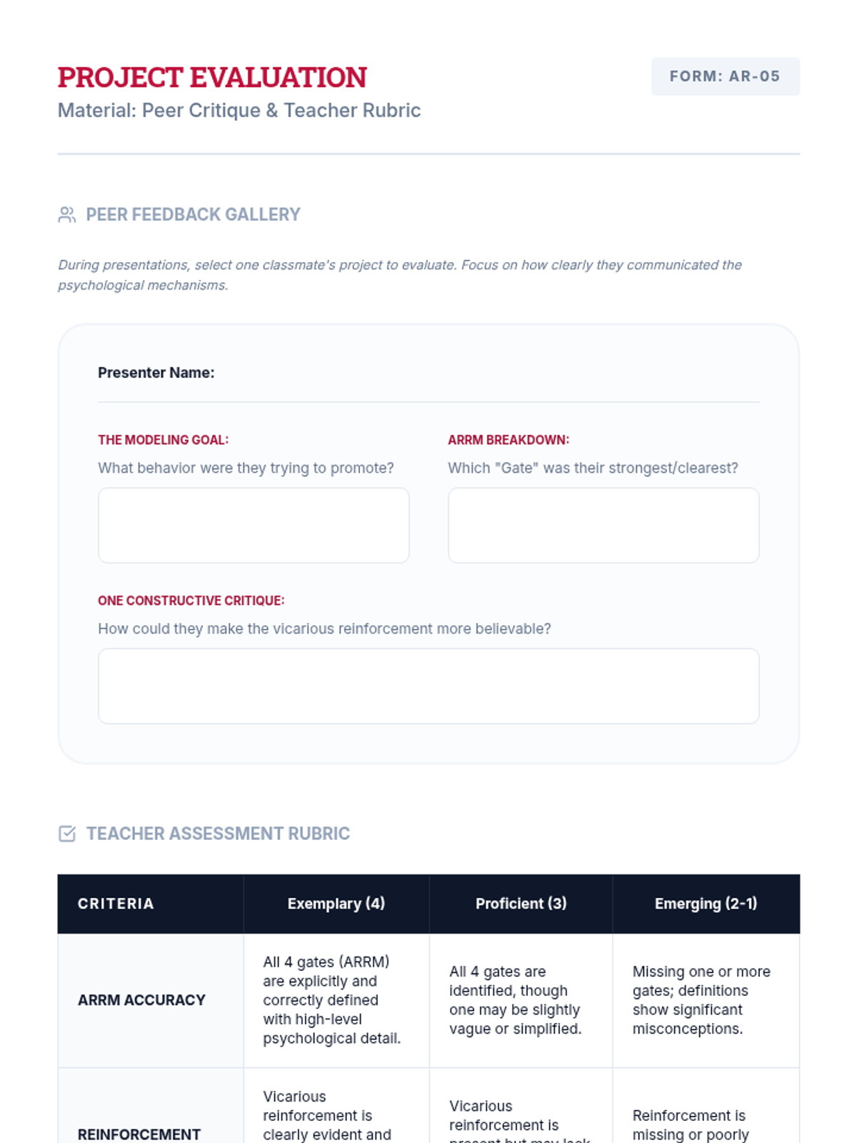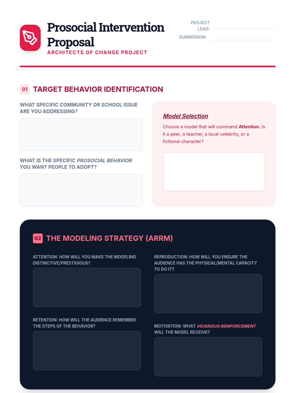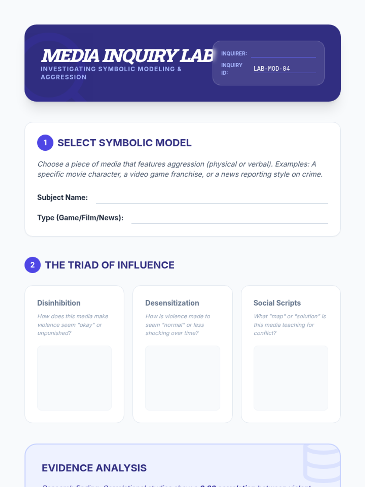 This sequence explores Albert Bandura's social learning theory, covering the Bobo Doll experiment, the four cognitive processes of modeling, vicarious reinforcement, media's role in aggression, and the application of prosocial modeling. Students move from historical analysis to contemporary behavioral design.