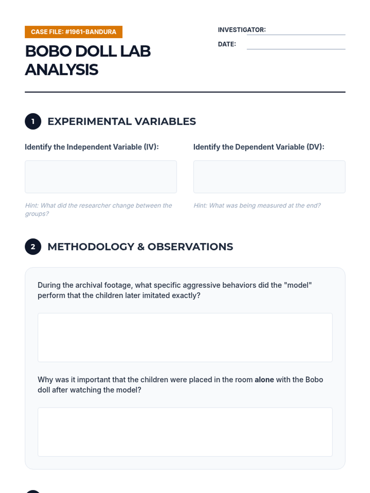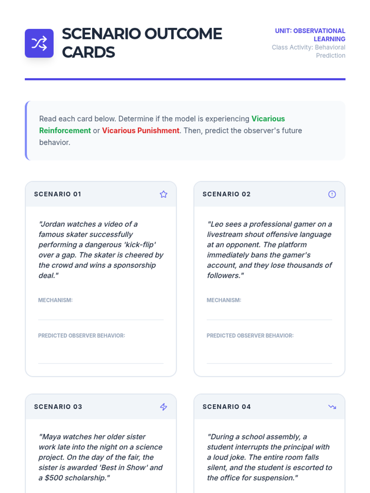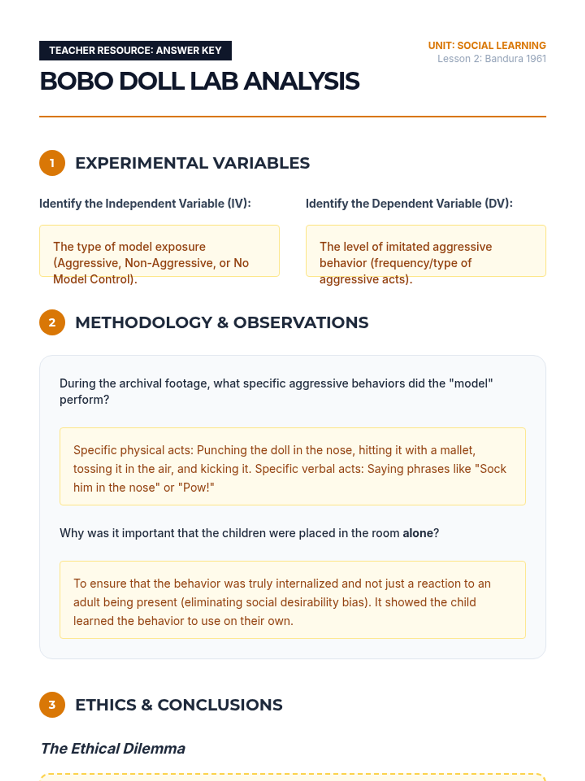 A comprehensive high school psychology unit exploring the mechanisms of observational learning, from Bandura's Bobo Doll experiment to the impact of social media influencers. Students analyze the cognitive processes (ARRM) and the power of vicarious reinforcement in shaping human behavior.