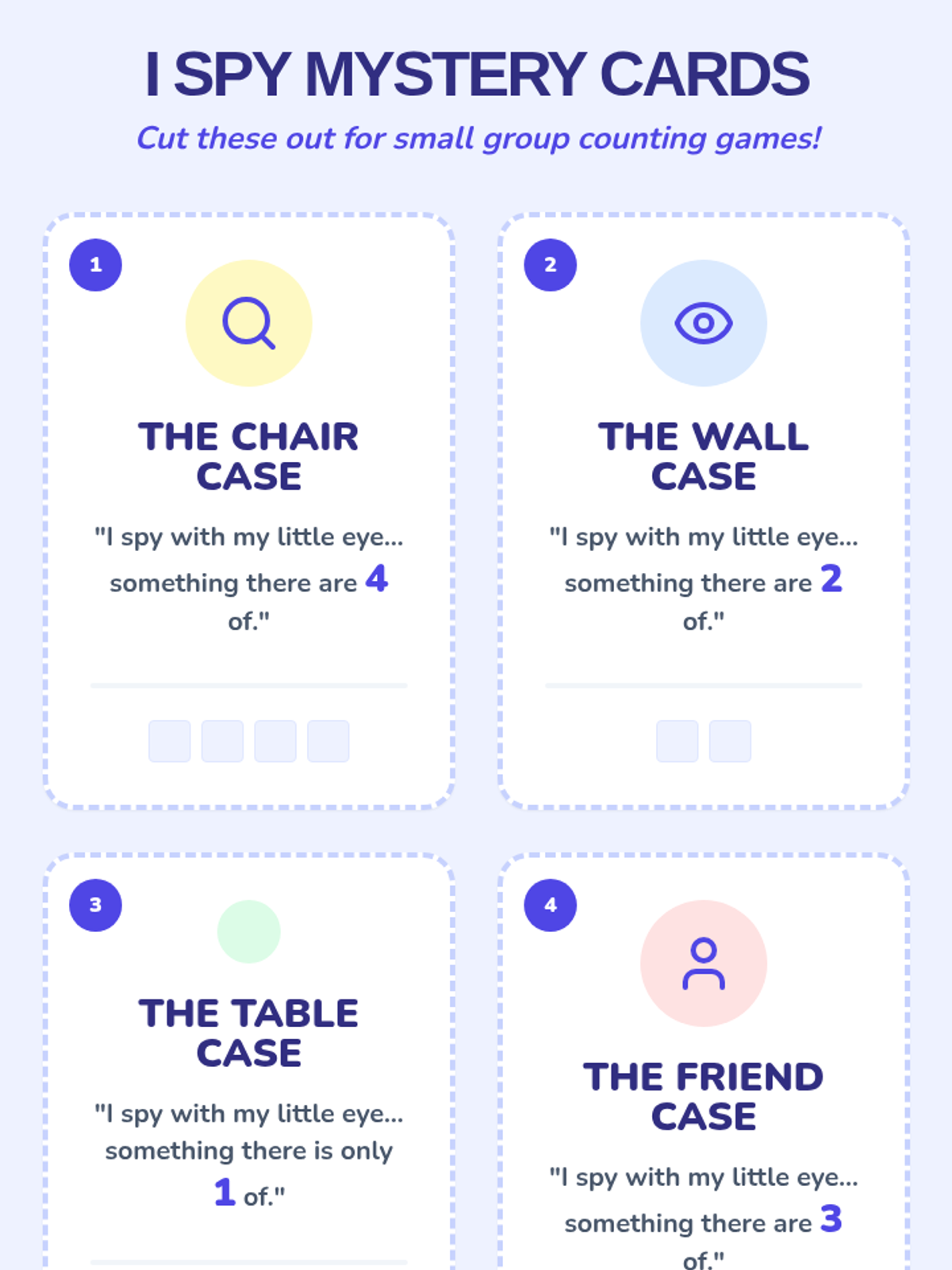 A Pre-K sequence that takes counting outside the classroom manipulatives box, encouraging students to identify and count fixed objects in their environment. Students progress from counting their own body parts to exploring classroom architecture, nature, and visual puzzles.