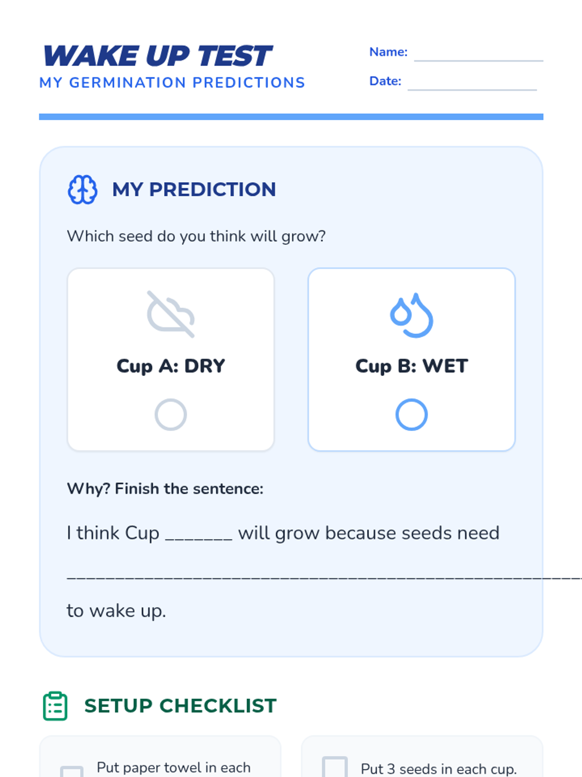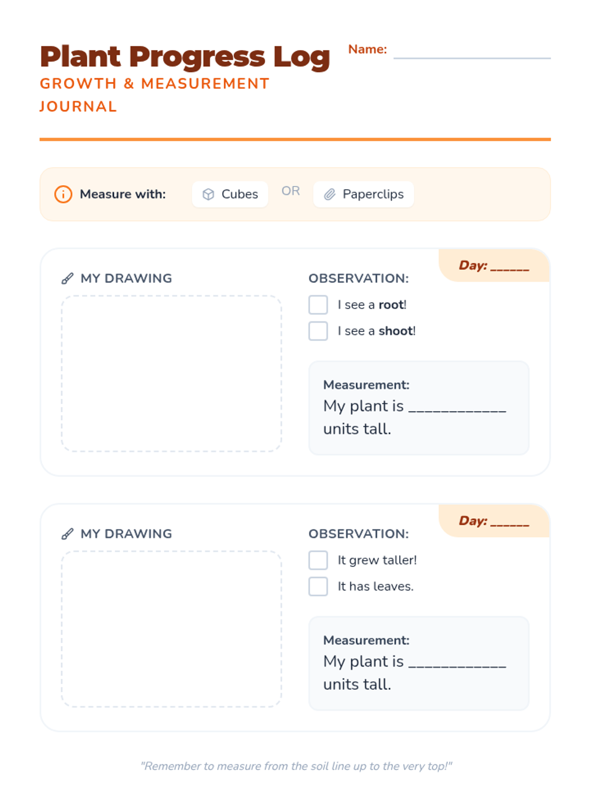 Students explore the chronological progression of plant life by following a seed's journey from dormancy to germination and maturity through hands-on observation and daily logging.