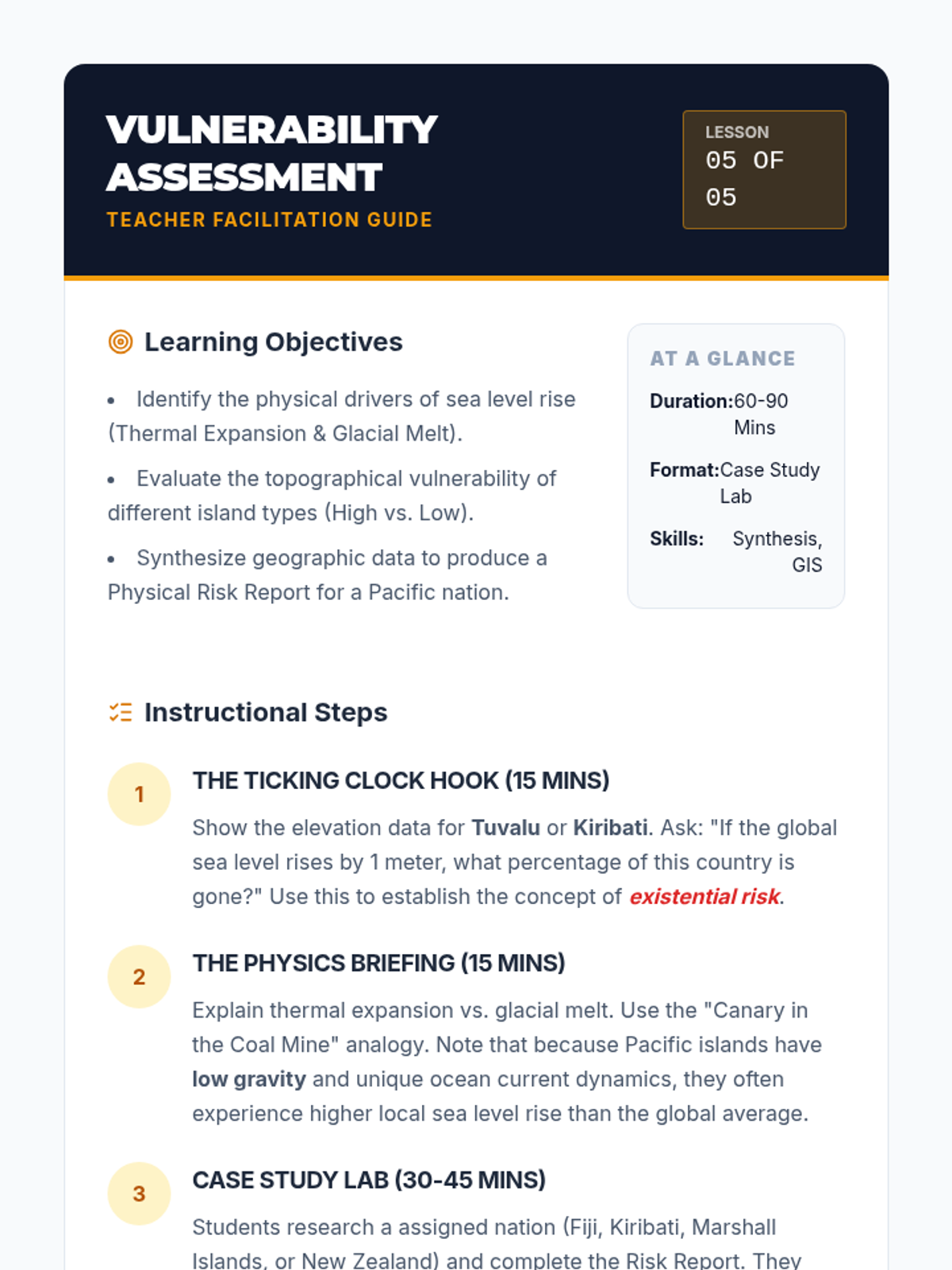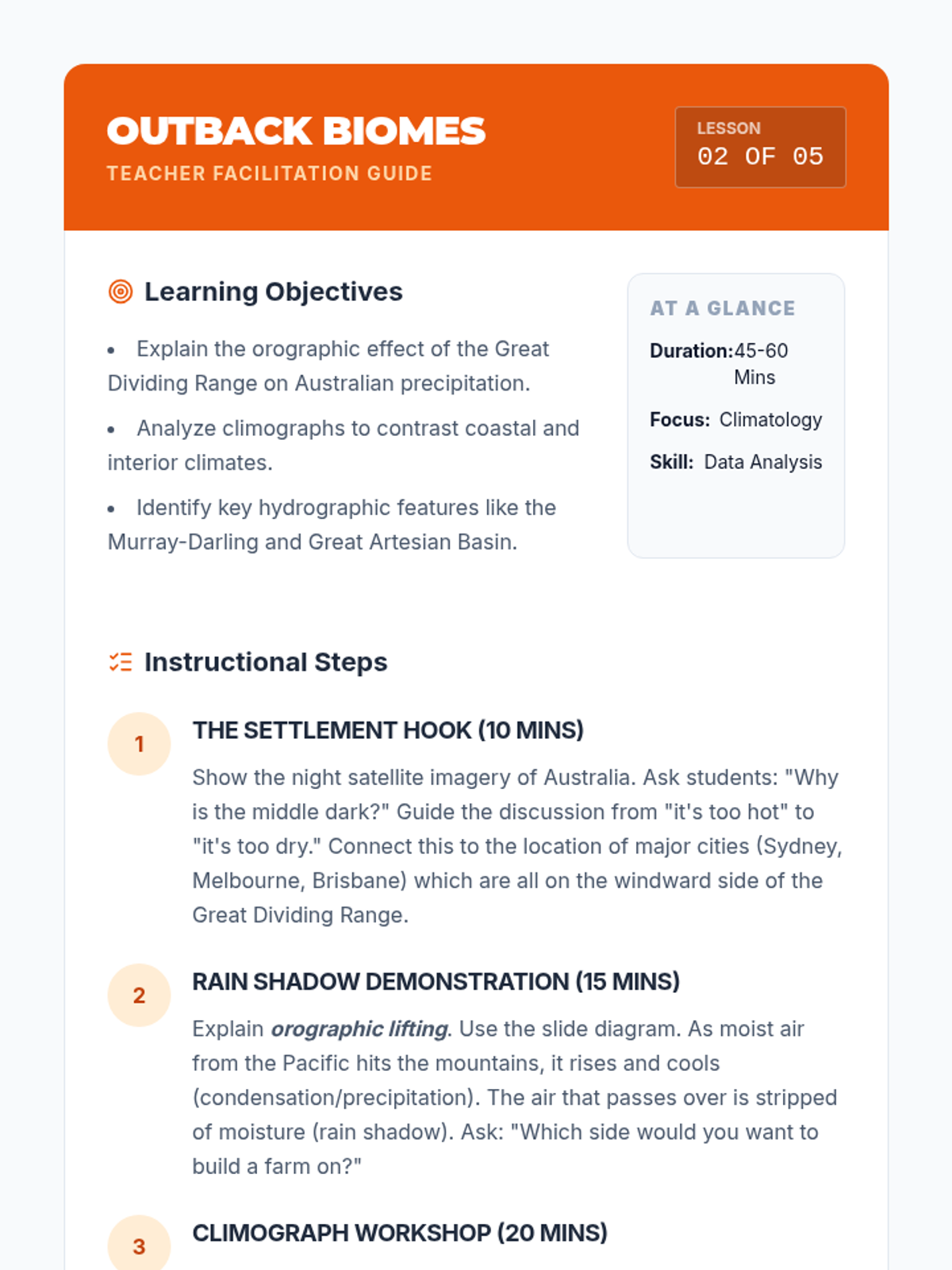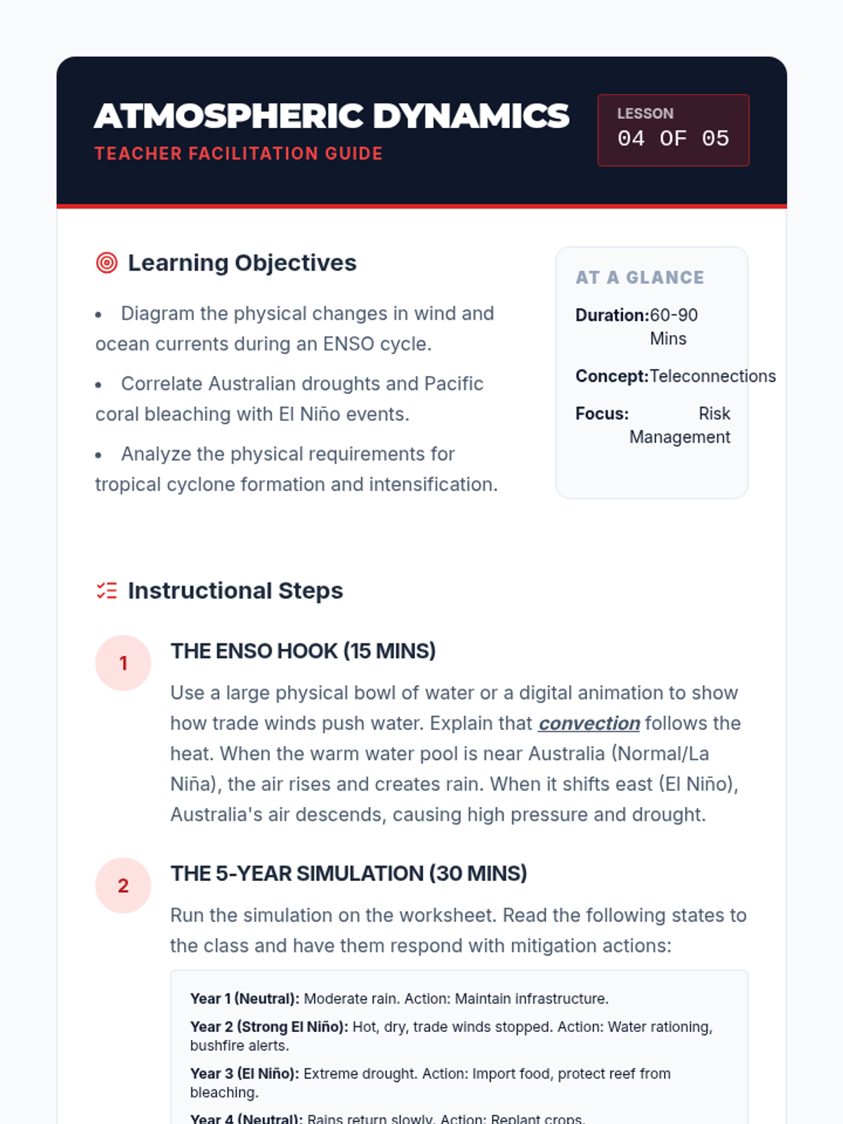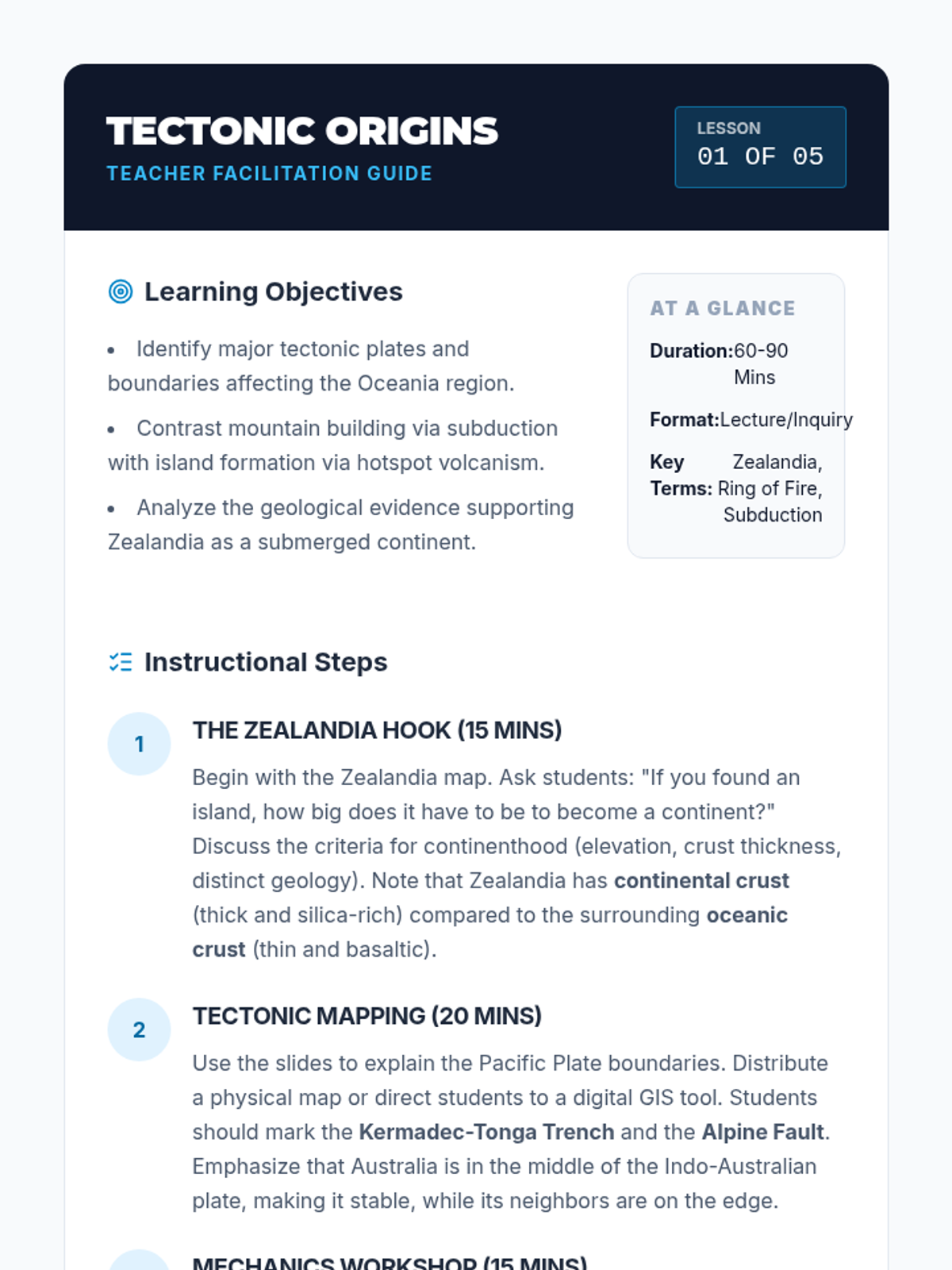 A comprehensive 10th-grade geography sequence exploring Oceania's physical origins, Australian biomes, island types, climate cycles like El Ni\u00f1o, and the contemporary threat of rising sea levels.