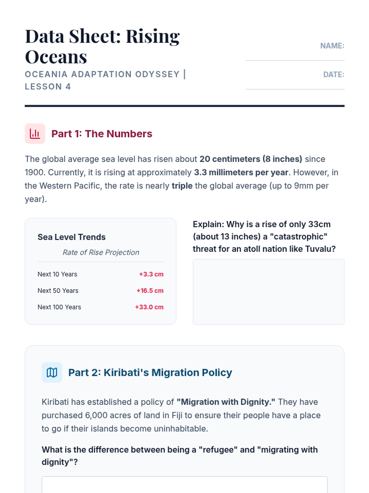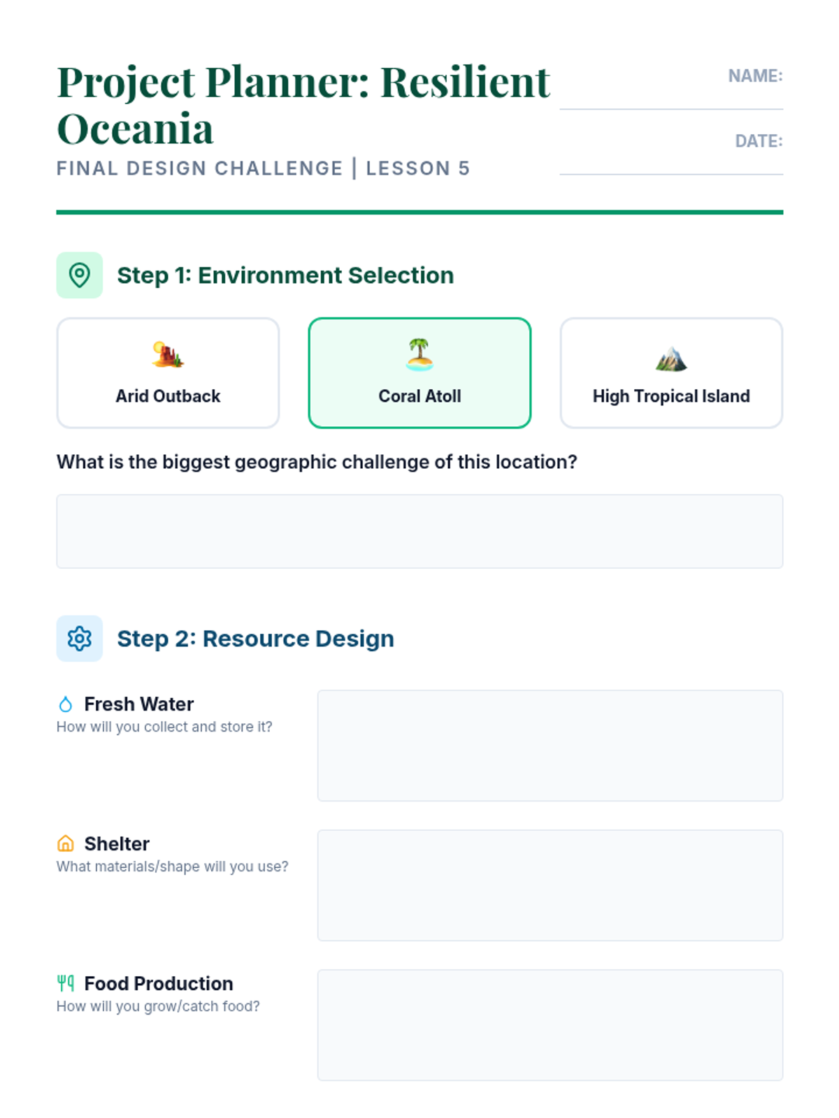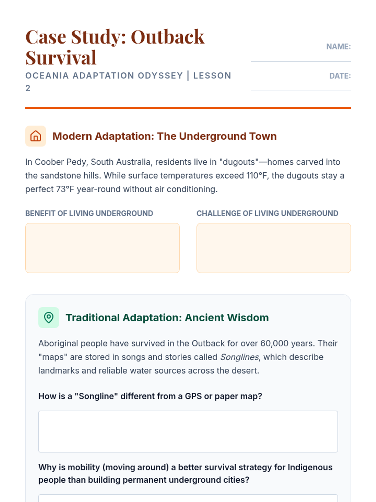 A comprehensive geography sequence exploring how humans adapt to the diverse environments of Oceania, from the Australian Outback to coral atolls, while addressing modern climate challenges.