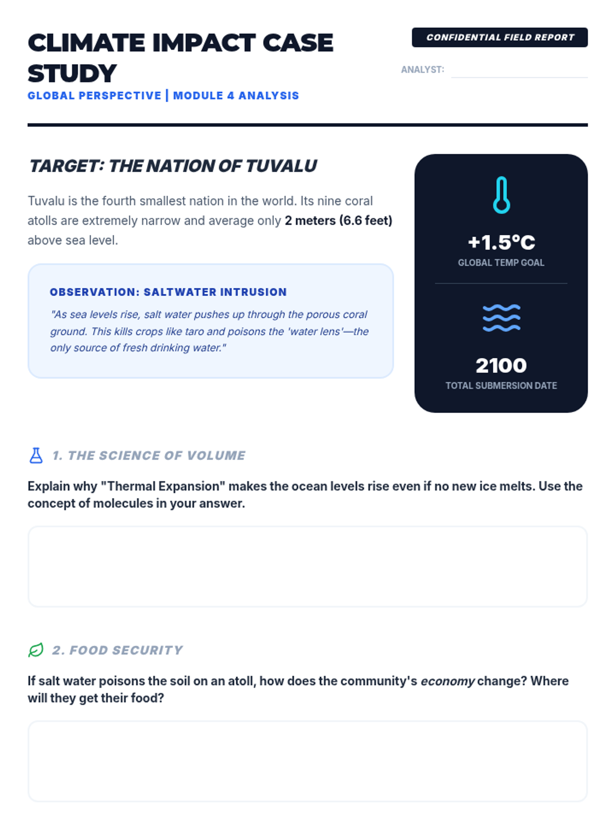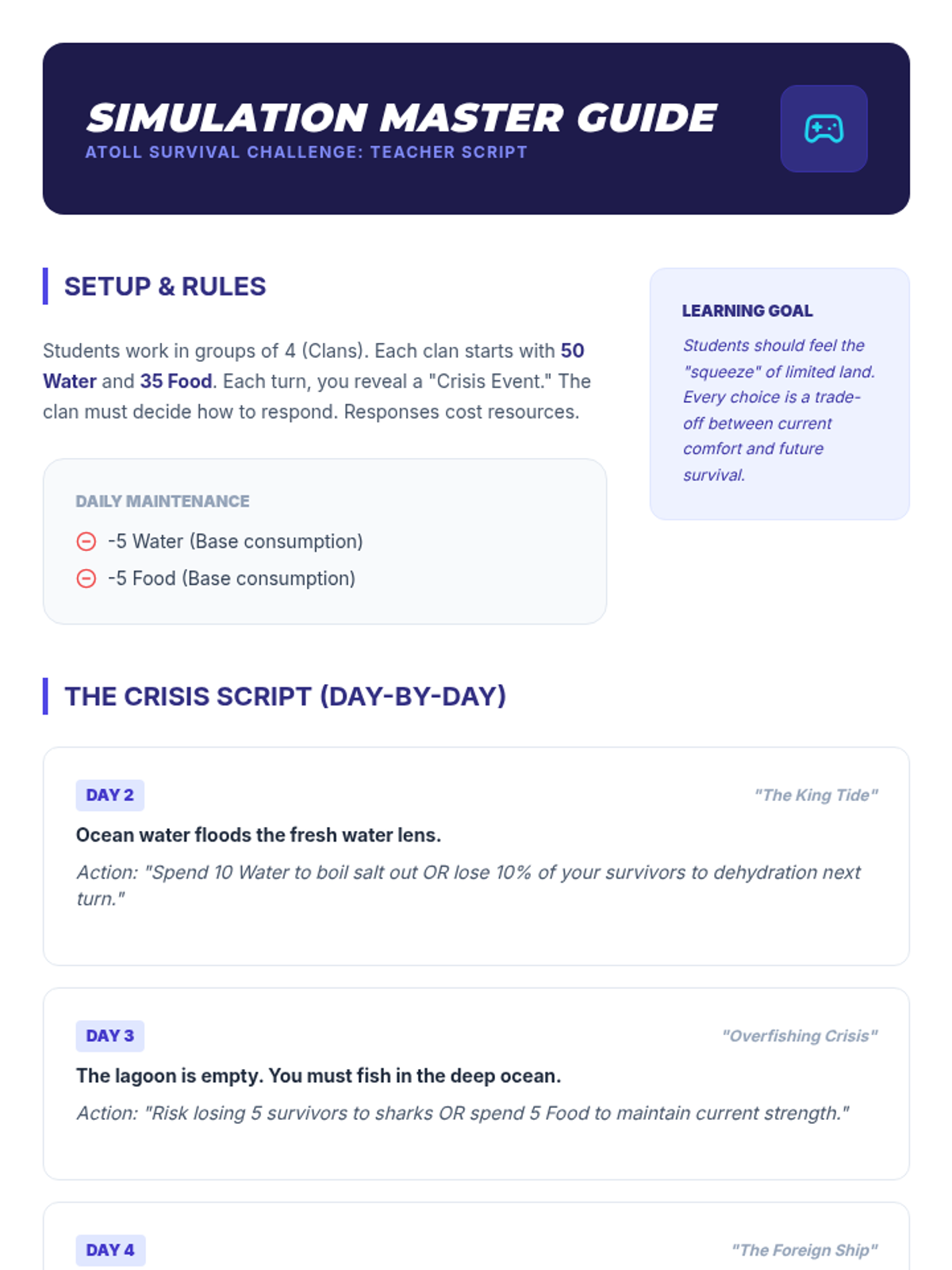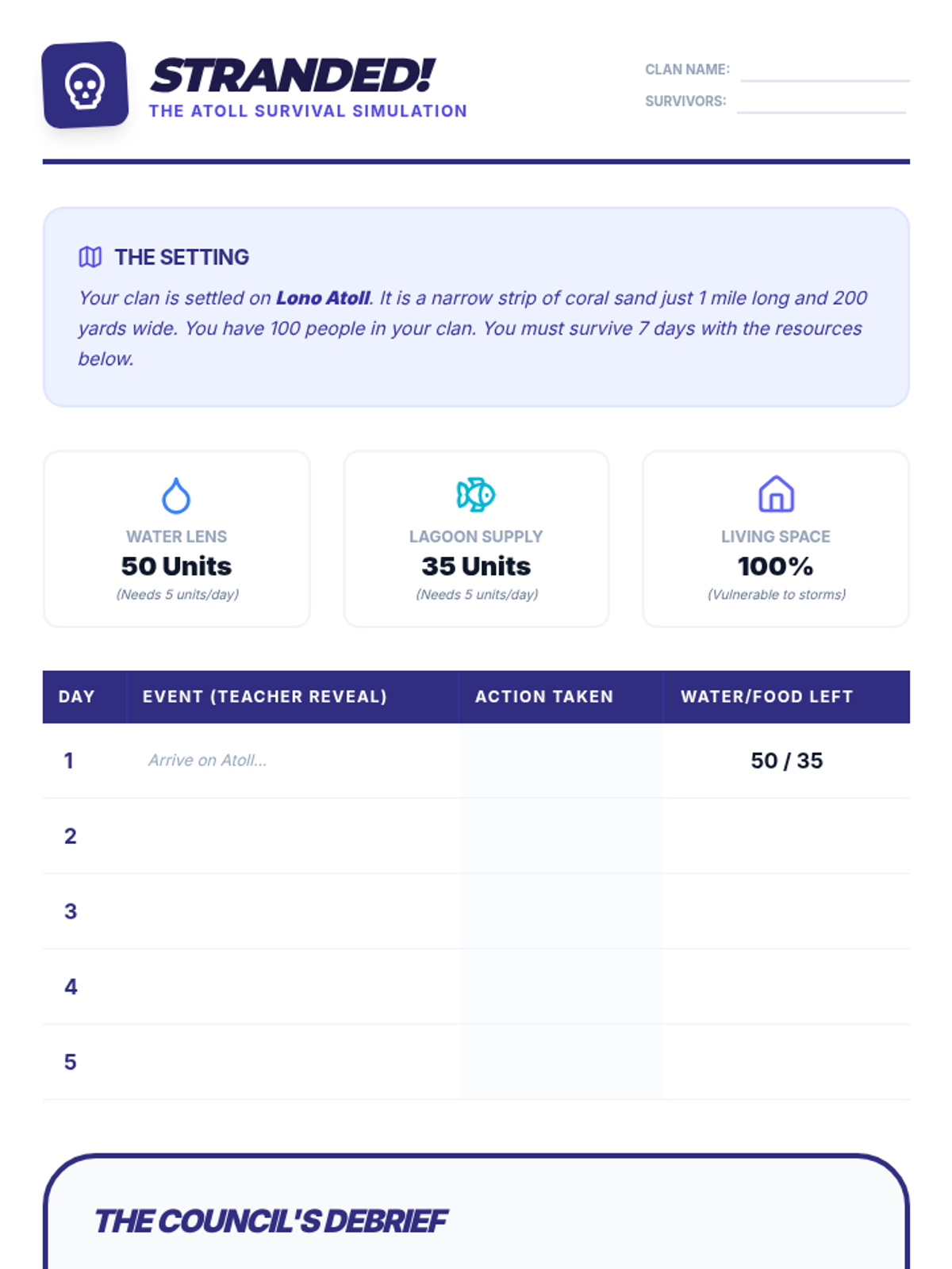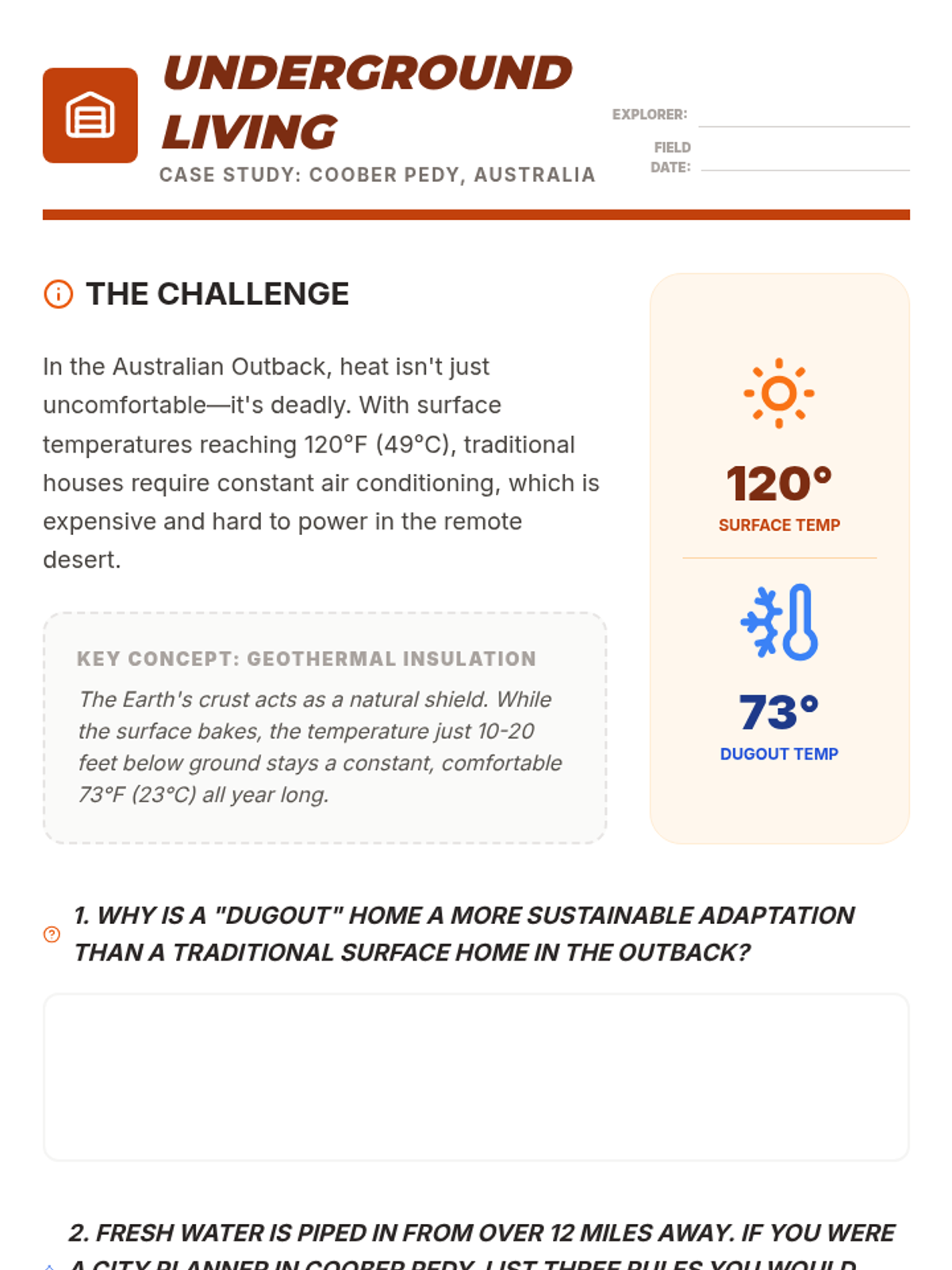 A 6th-grade geography sequence exploring how humans adapt to the diverse environments of Oceania, from the Australian Outback to remote Pacific atolls. Students analyze climate data, simulate resource scarcity, and design resilient communities for the future.