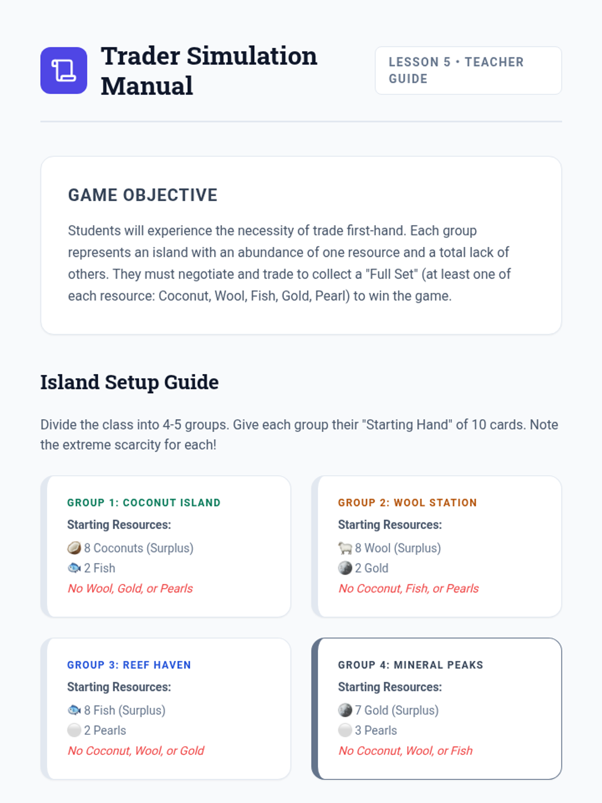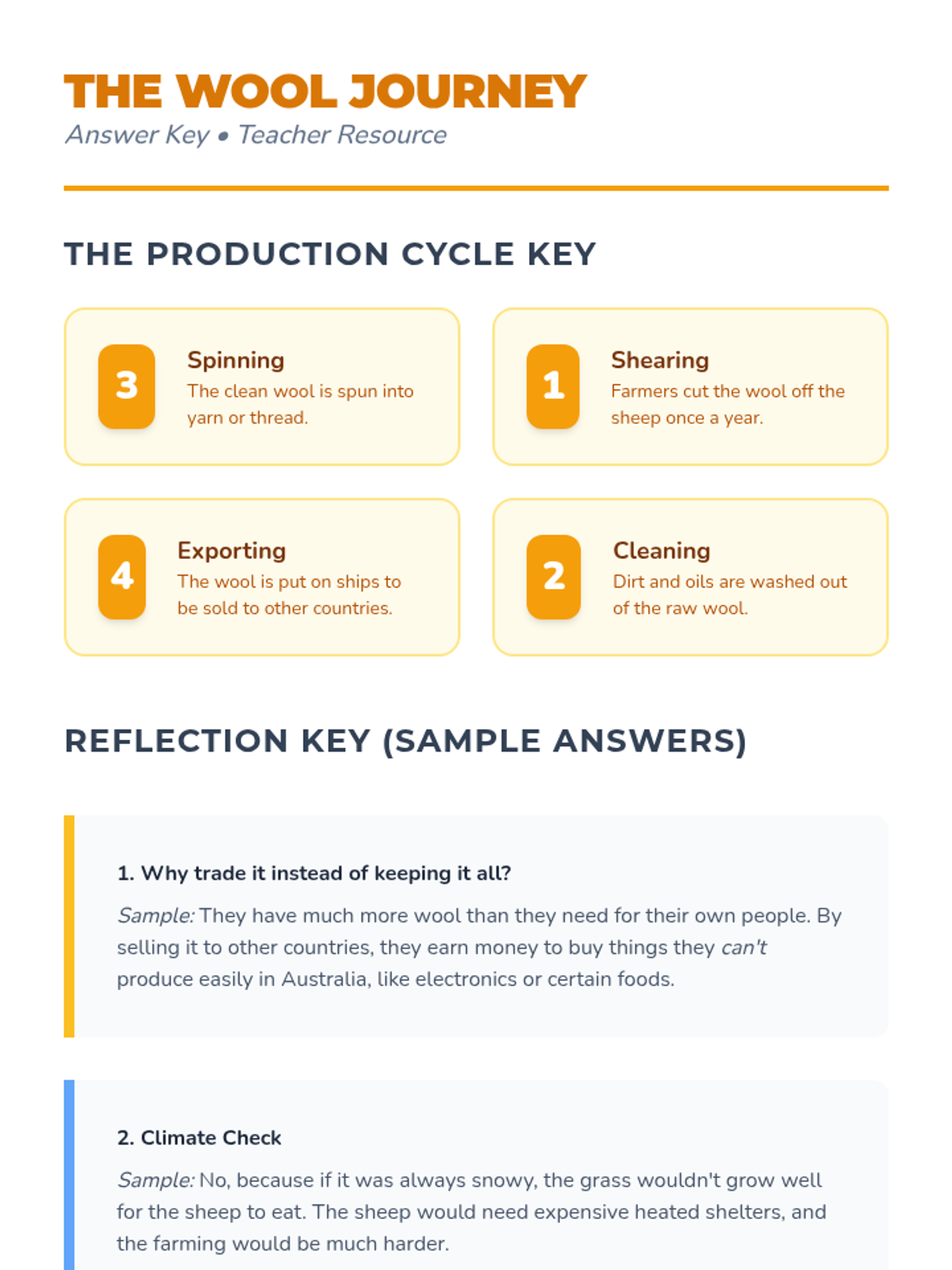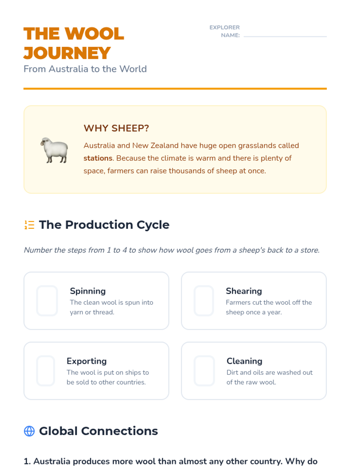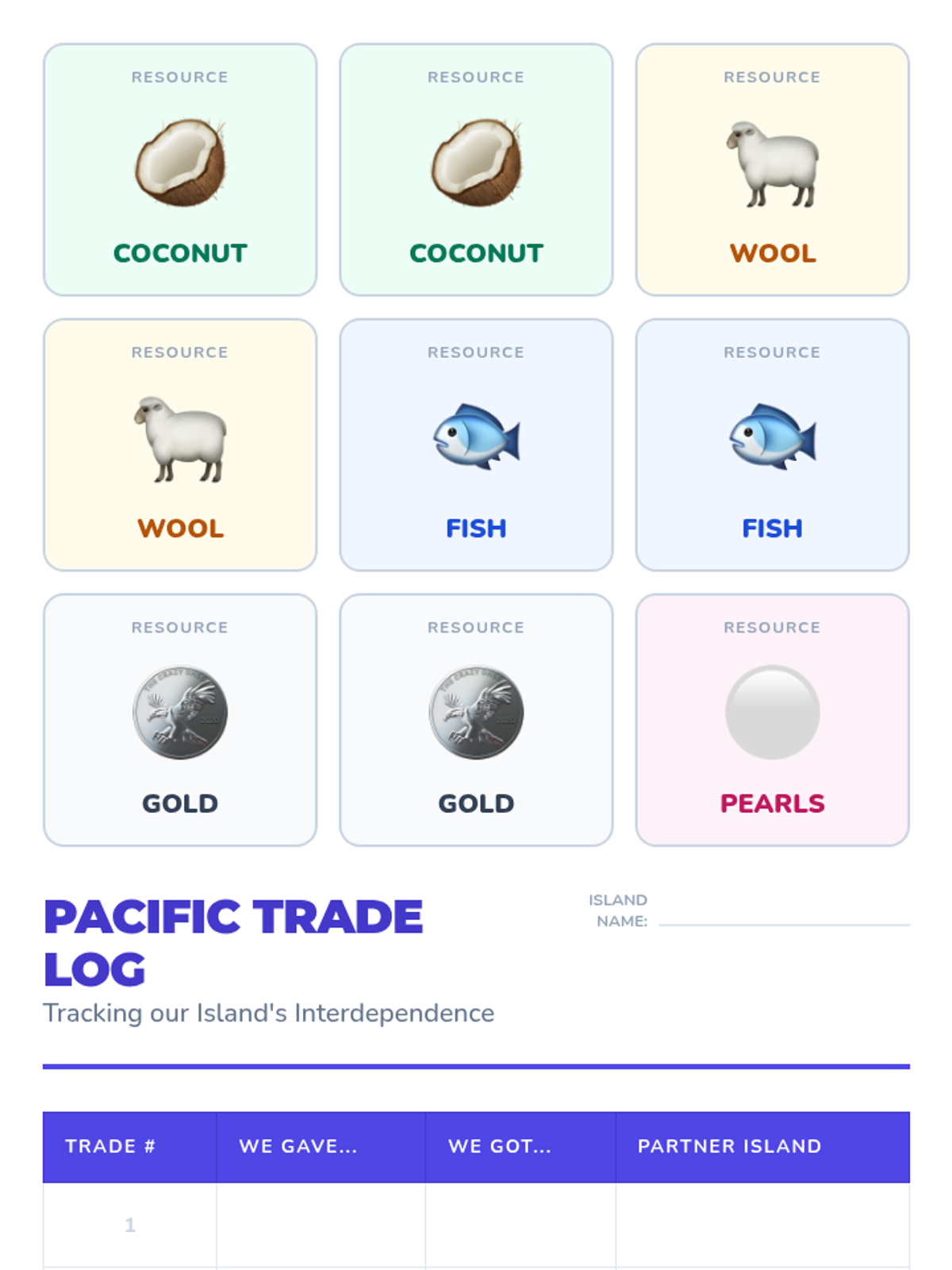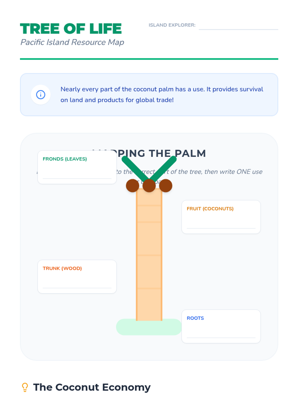A 5-lesson unit for 3rd-grade students exploring the natural resources and economies of Oceania, from Australia's sheep farms to the versatile coconut palms of the Pacific Islands, culminating in a trade simulation.
