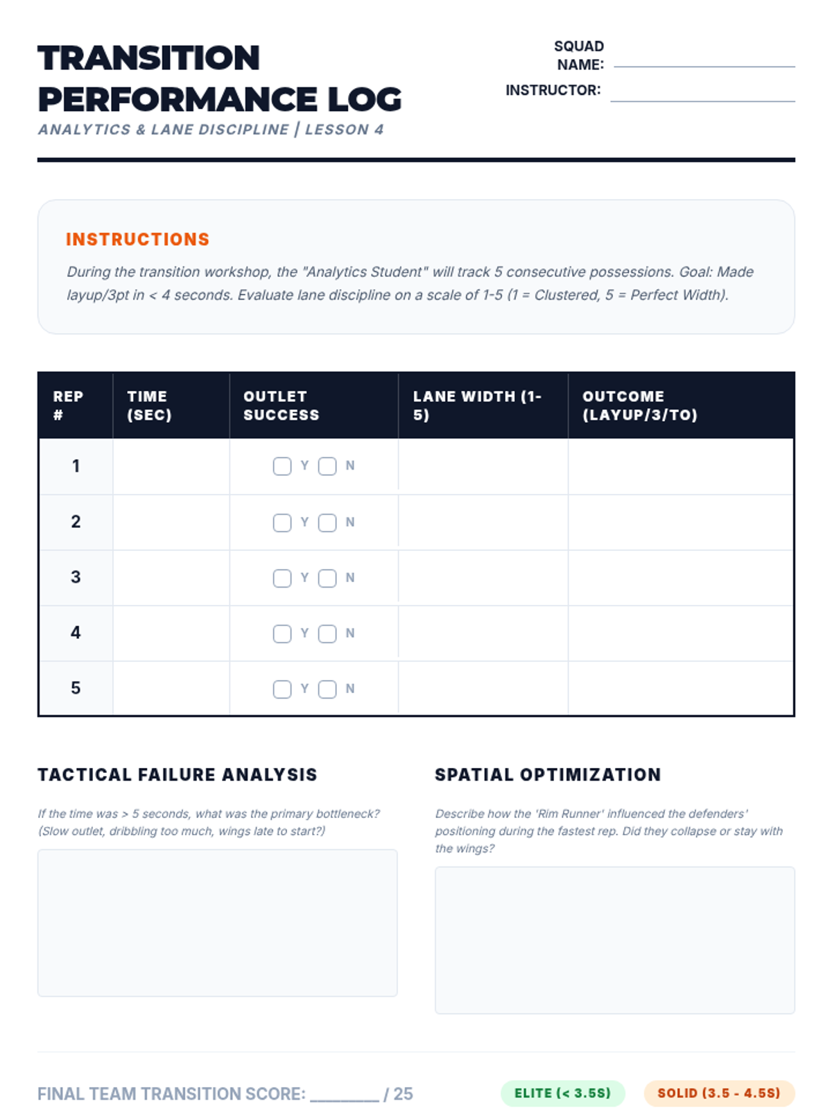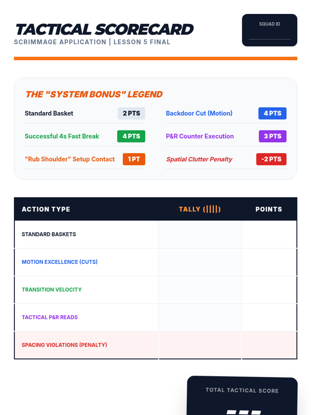 An advanced exploration of offensive basketball strategy for undergraduate students, focusing on spatial geometry, the physics of court spacing, and complex decision-making in real-time scenarios. Students progress from foundational spacing principles to sophisticated motion offenses and transition logic.