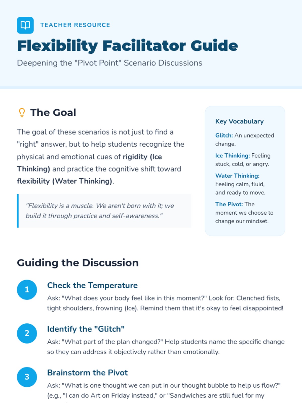 A social-emotional learning module designed for K-3 students to develop resilience and adaptability during life transitions. Through the metaphor of travel, students learn to identify feelings, prepare for change, and build coping strategies.