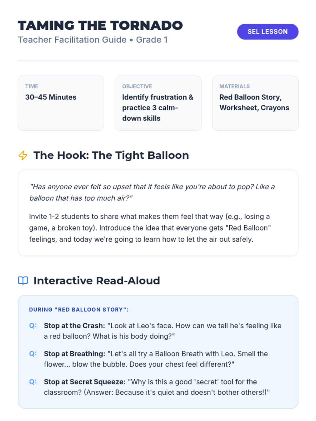 A 4-week social-emotional learning unit designed to help students identify their emotions, recognize physical signals, and build a personalized toolkit of coping strategies for the classroom and beyond.