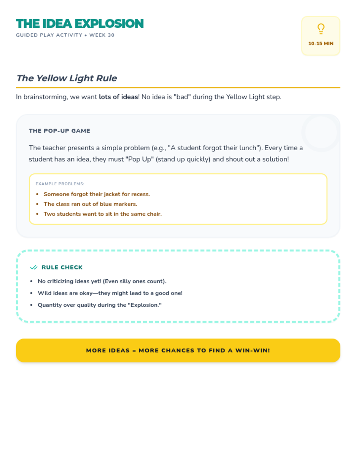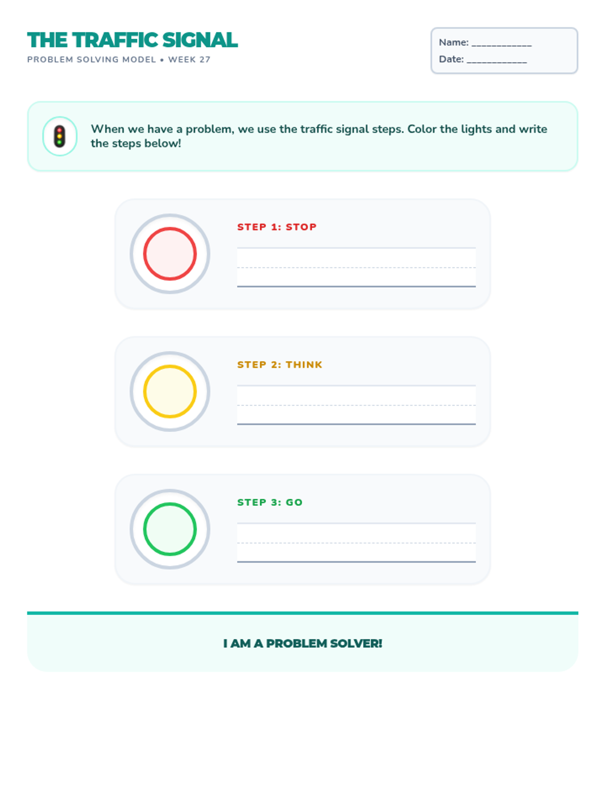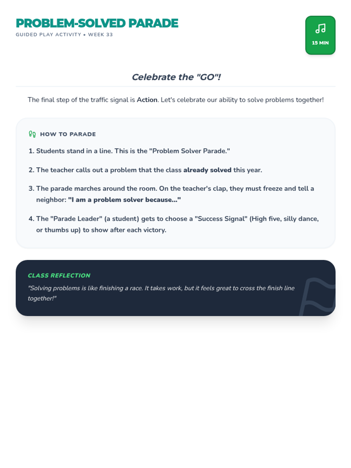 A comprehensive 36-week SEL sequence for 1st grade based on the Open Circle Curriculum, covering community building, self-management, relationship skills, and problem-solving.