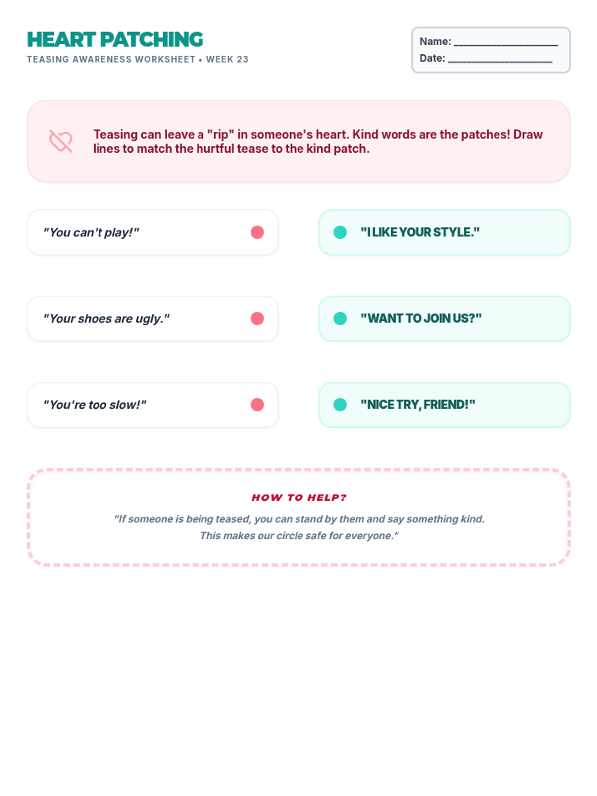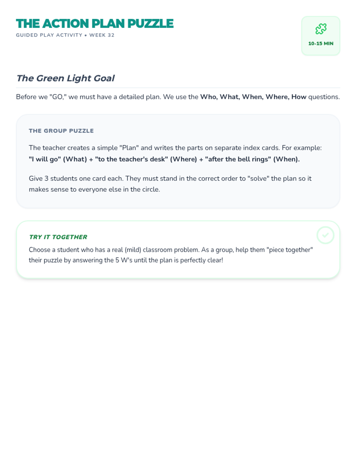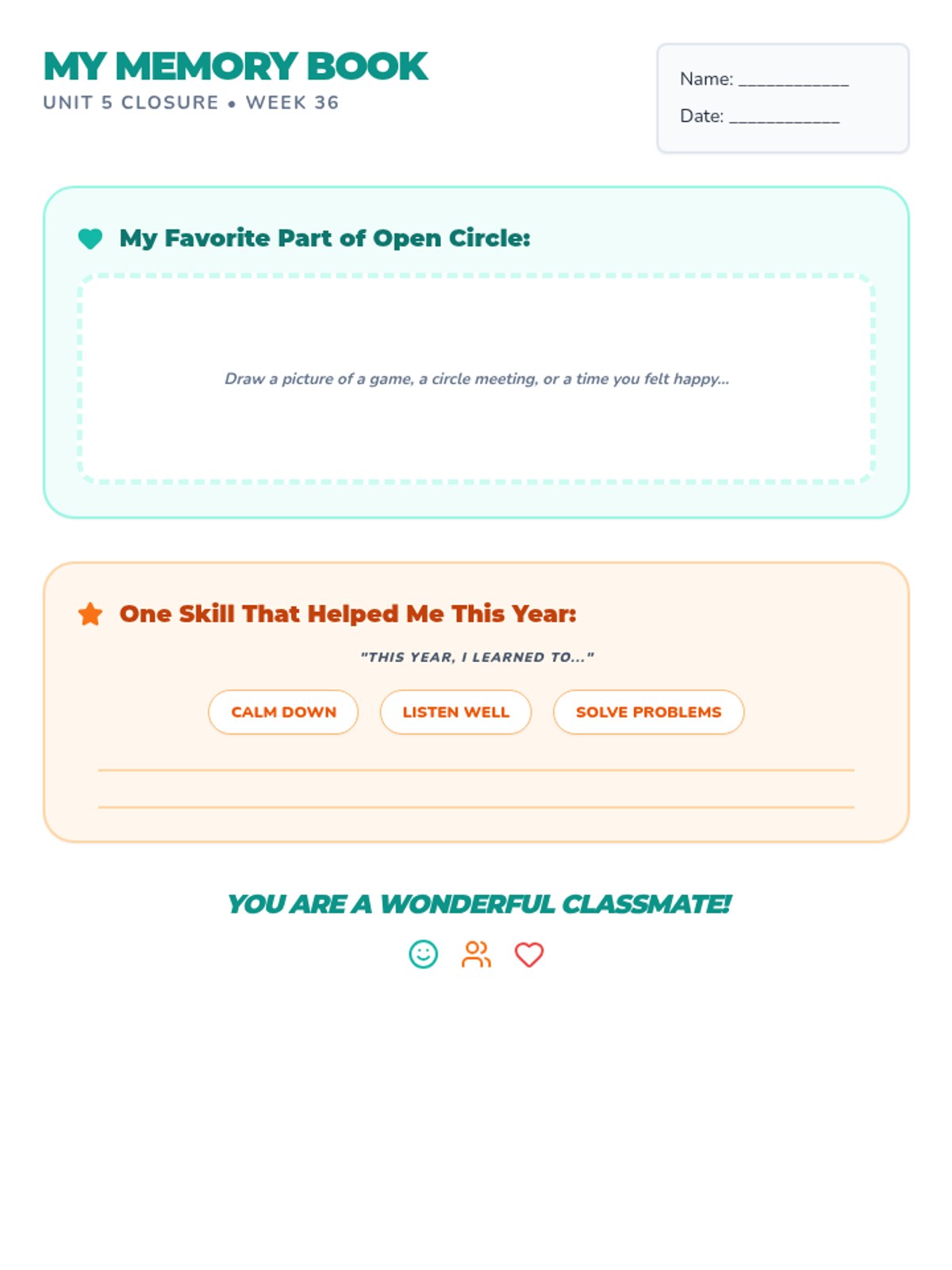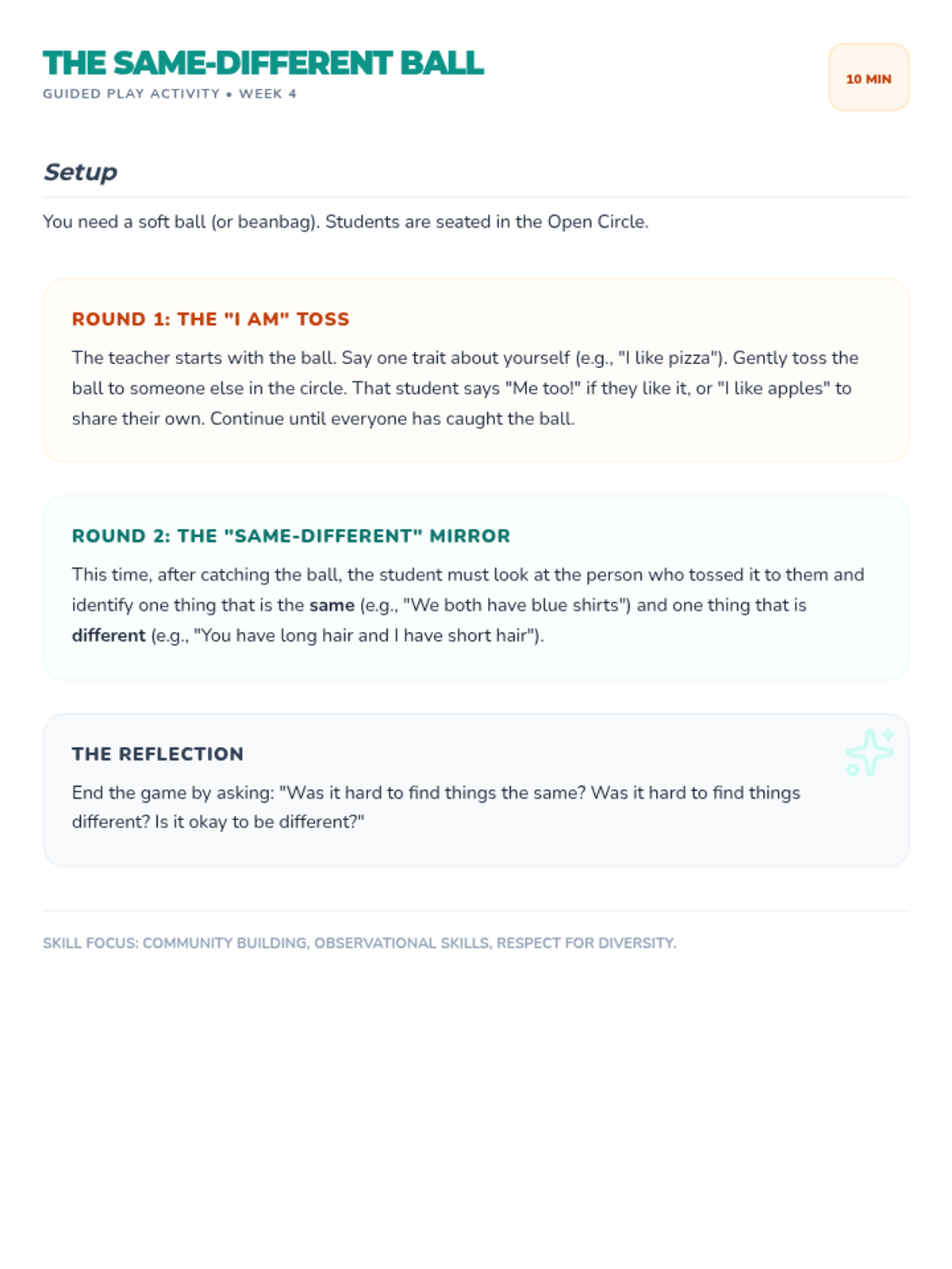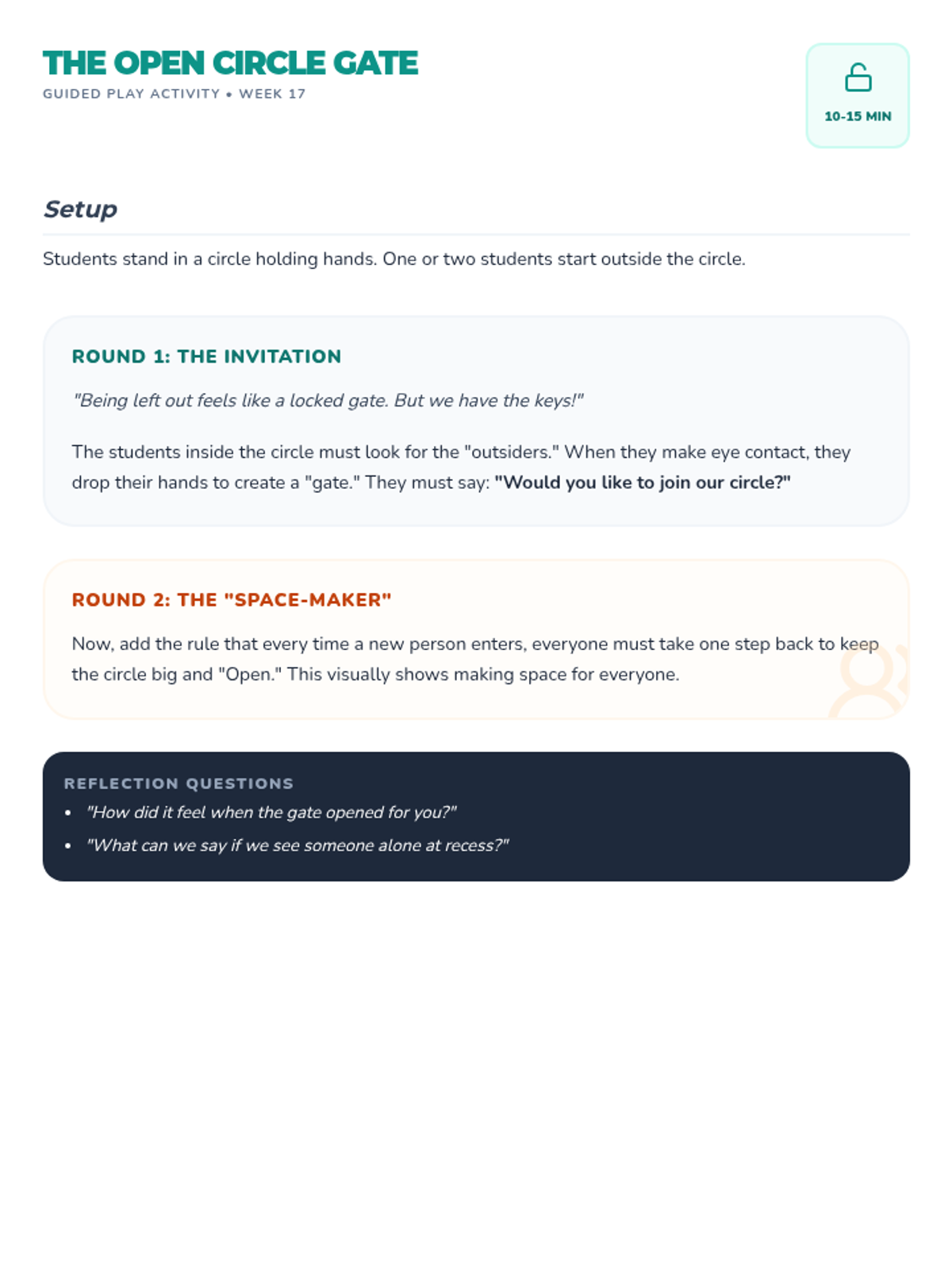 A series of supplementary social-emotional learning lessons for grades K-4, based on the Open Circle Curriculum. These lessons focus on community building, self-awareness, and interpersonal skills.