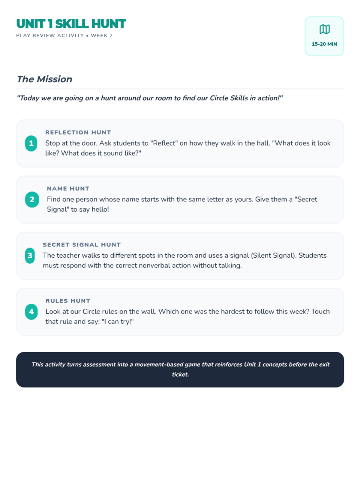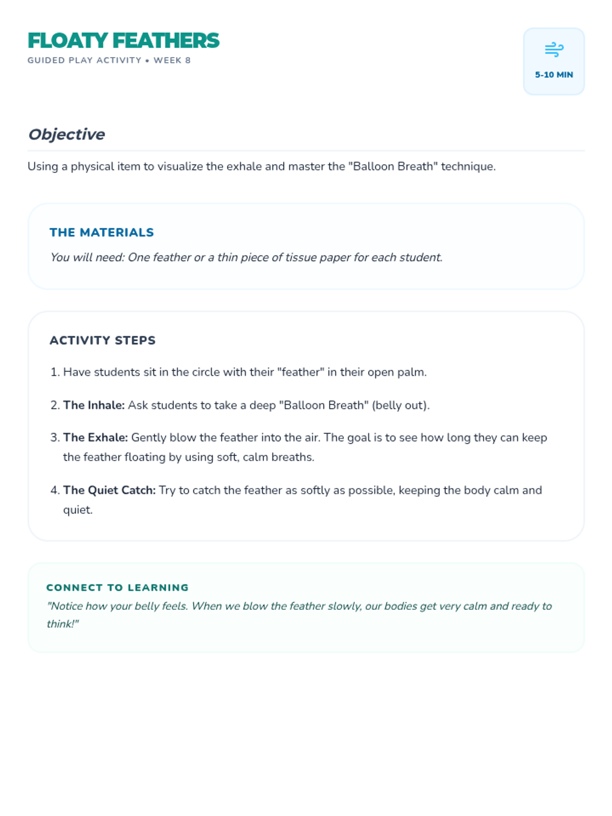 A 6-lesson social skills unit for K-1 students focused on self-regulation, personal space, and social interaction through the theme of forest animal friends. Students learn essential classroom behaviors like listening, deep breathing, and sharing through stories and guided activities.
