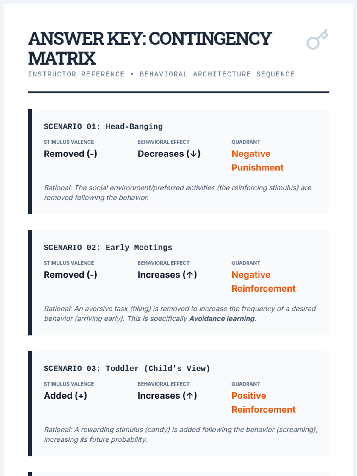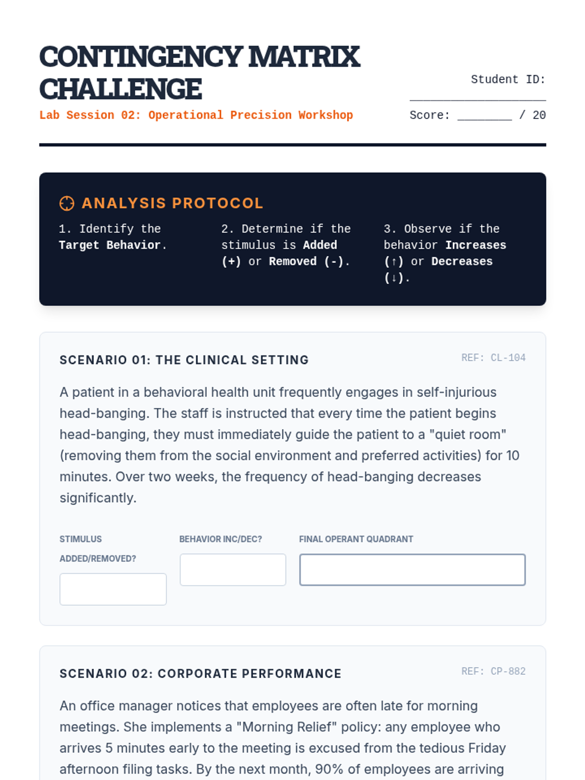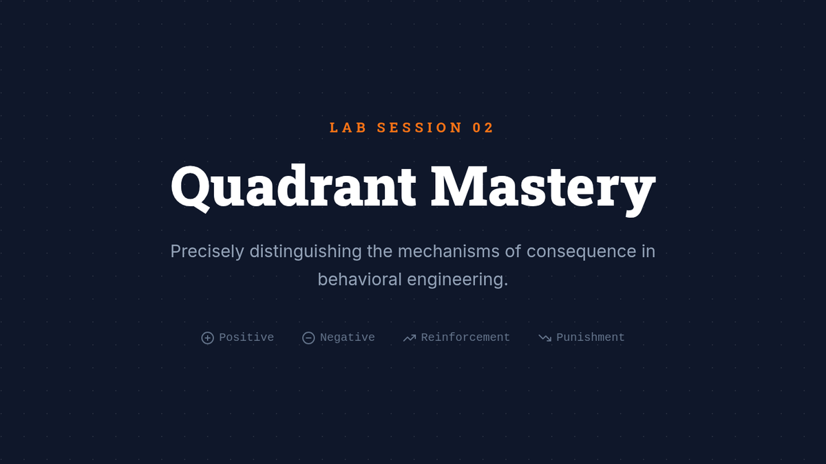A comprehensive undergraduate sequence exploring the theoretical foundations, mechanical contingencies, and ethical applications of operant conditioning. Students progress from historical Law of Effect theories to the practical design of behavioral shaping protocols and token economies.