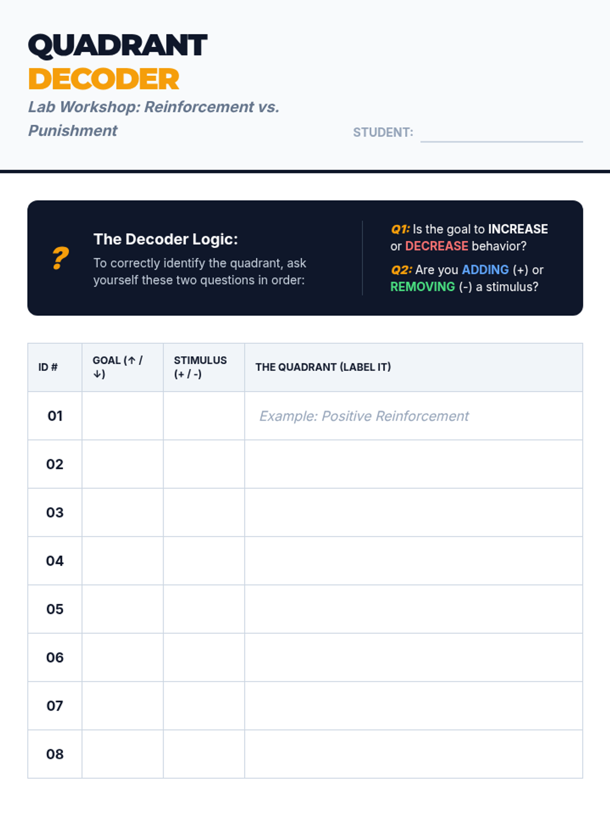 A comprehensive unit on operant conditioning, taking students from basic behavioral principles to the ethical application of behavior modification techniques. Students will explore reinforcement, punishment, schedules, and shaping through simulations and projects.