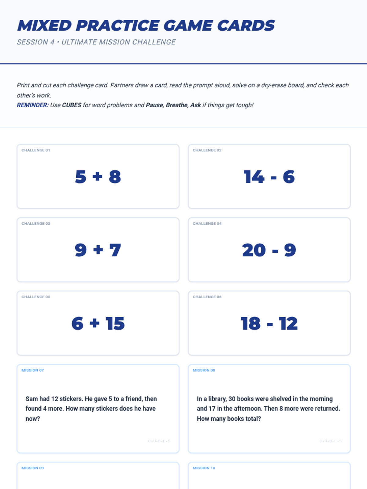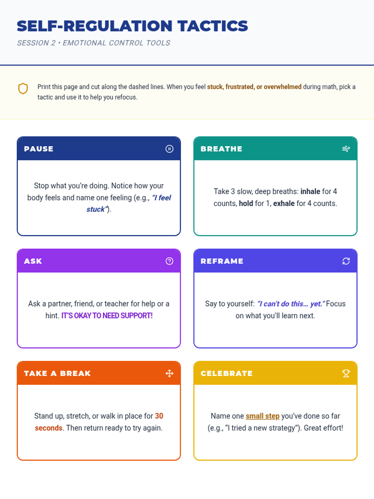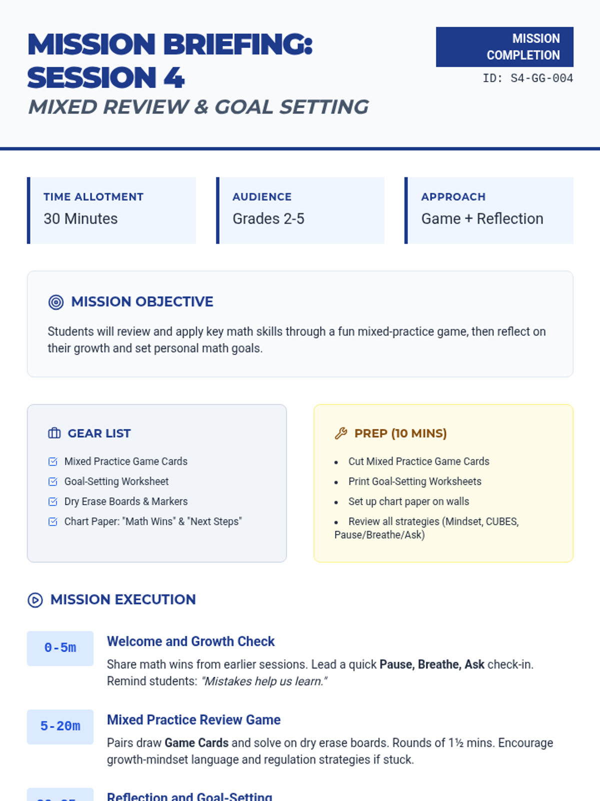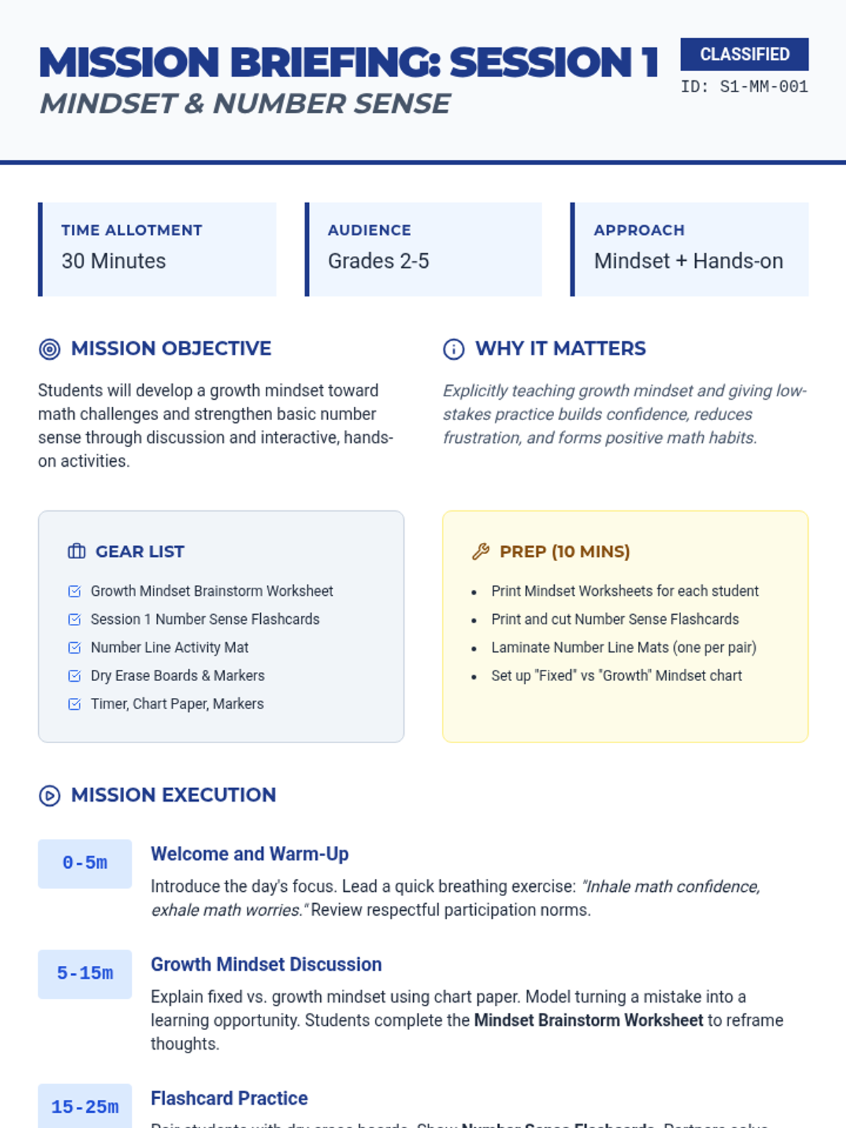 A 4-session series designed to boost struggling math students' skills and self-regulation through growth mindset, number sense, and problem-solving strategies.