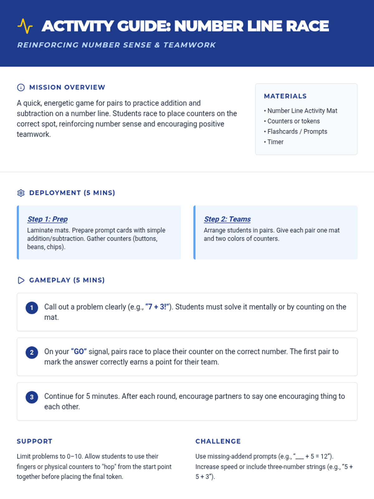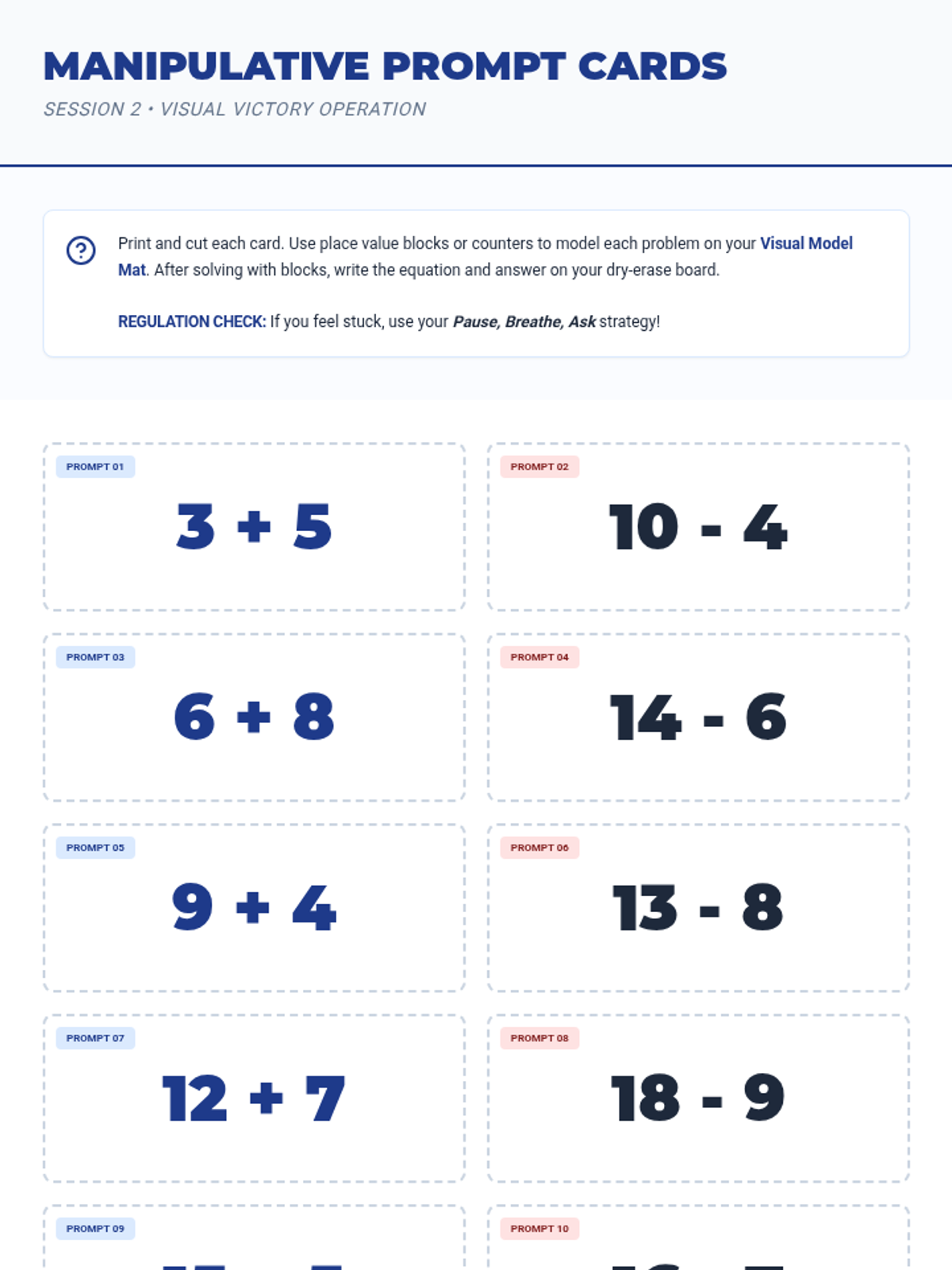 A 3-day small group intervention sequence focused on Computations and Algebraic Relationships. Students will master unknown addends, skip counting, and balanced equations through counting on and number line strategies.