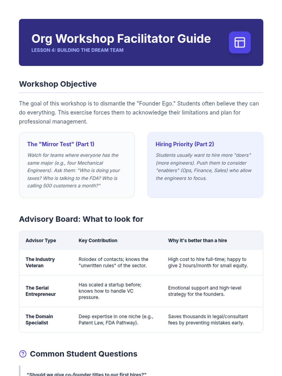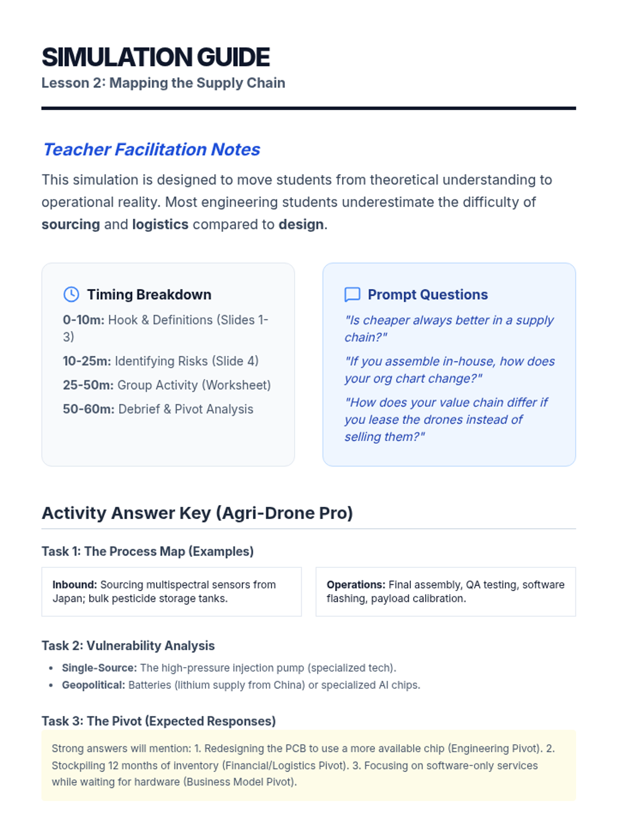 This sequence guides undergraduate science and engineering students through the internal mechanics of a venture, covering intellectual property, supply chain logistics, regulatory compliance, and organizational planning to create a feasible Operations Plan.