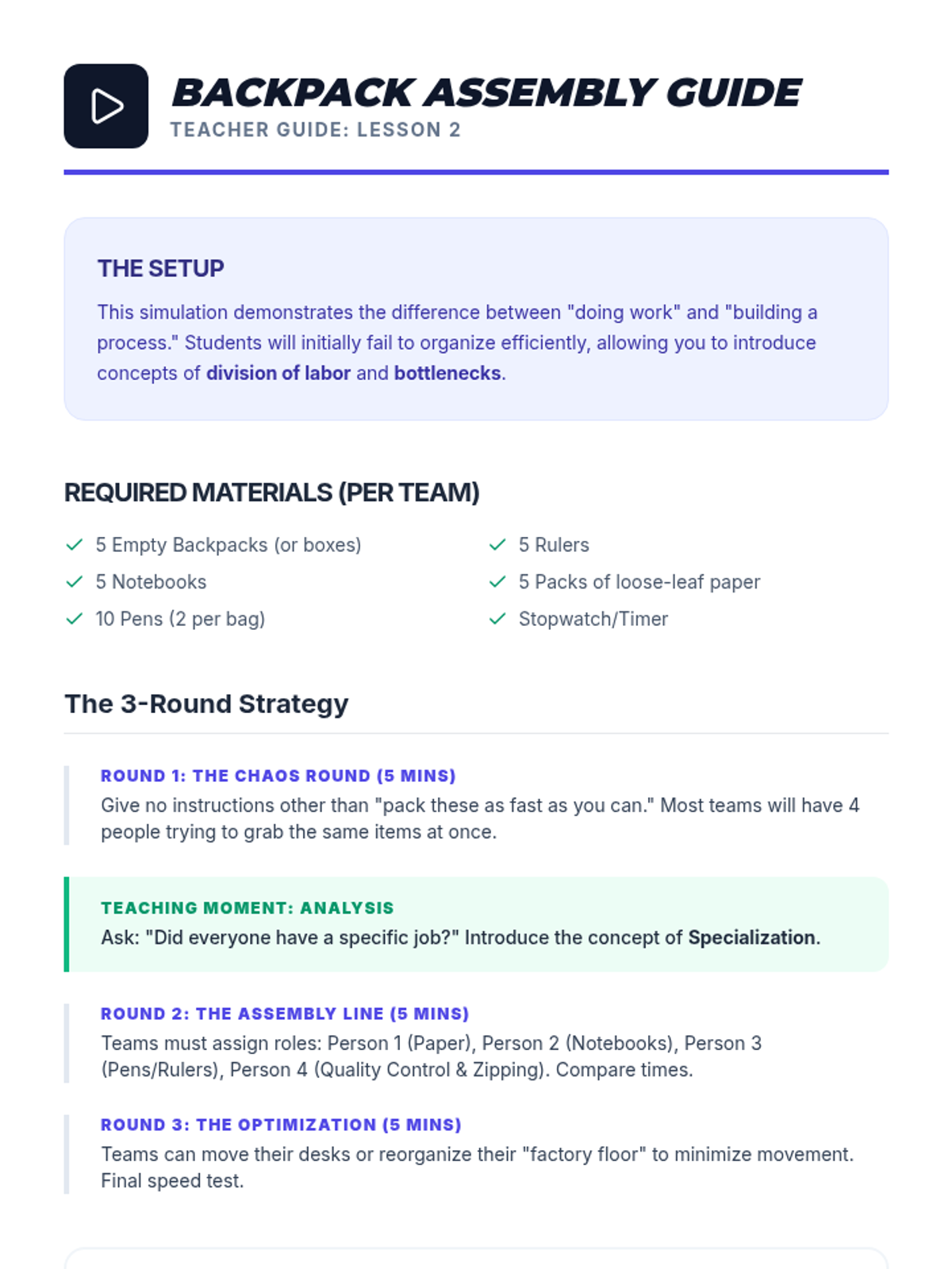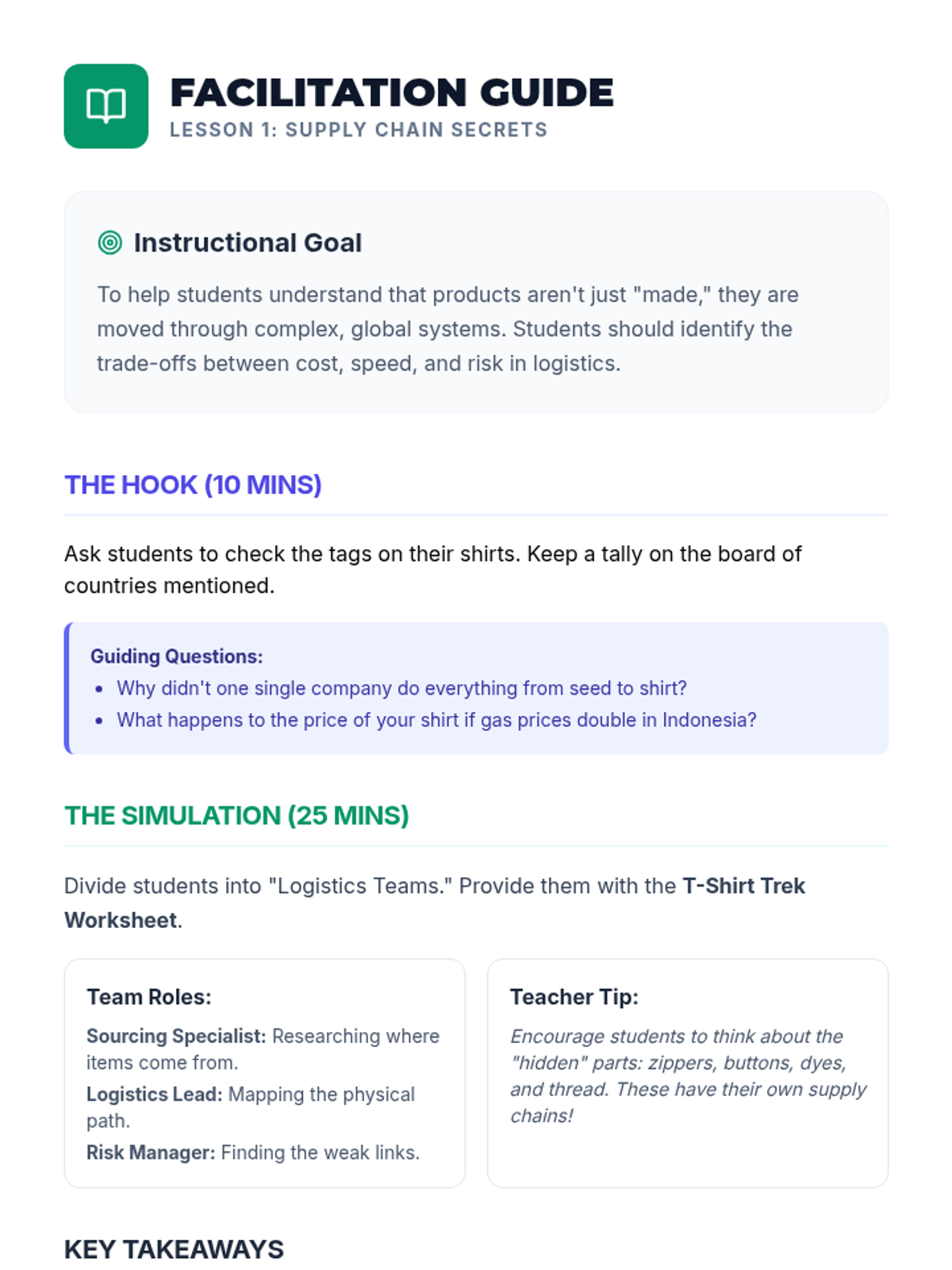This sequence guides 9th-grade students through the logistical and legal foundations of starting a business. Students explore supply chain management, operational efficiency, legal entity selection, organizational design, and corporate social responsibility to understand the 'engine' that drives a successful startup.