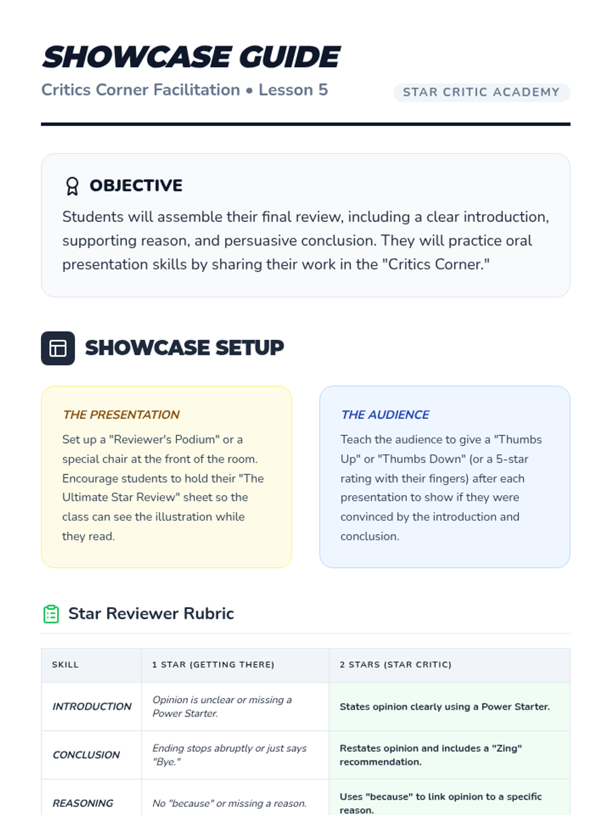 A 1st Grade sequence focused on opinion writing, teaching students to state a preference clearly at the start and provide a recommendation at the end through the lens of reviewing their favorite items.