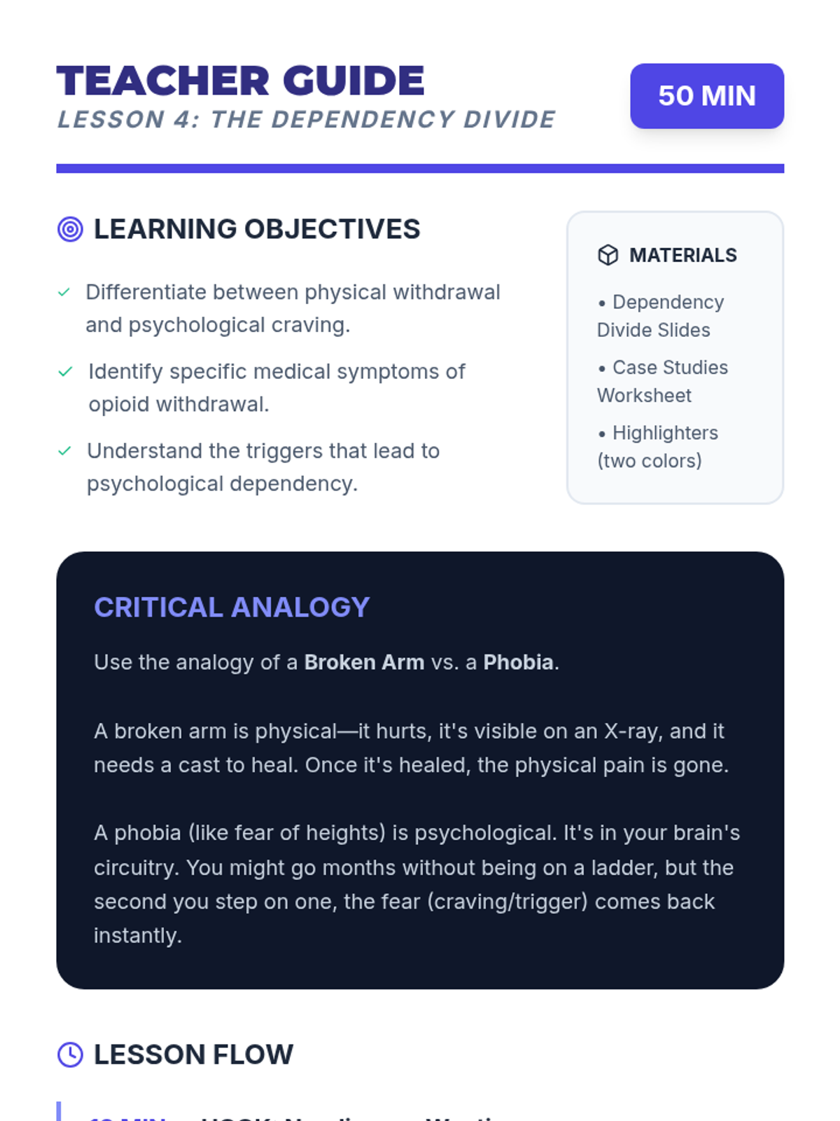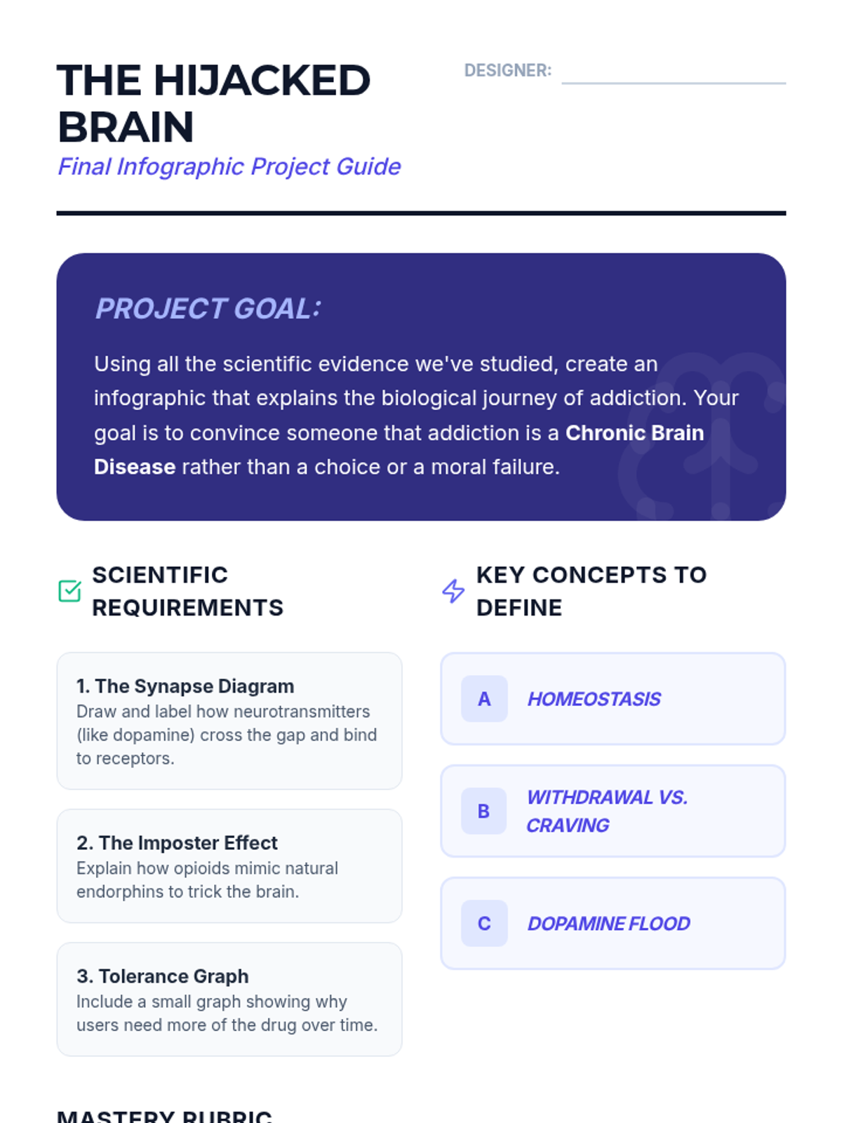 A comprehensive unit for 7th-grade students exploring the biological and chemical mechanisms of opioid addiction, focusing on neurotransmission, the reward pathway, tolerance, and the disease model of addiction.