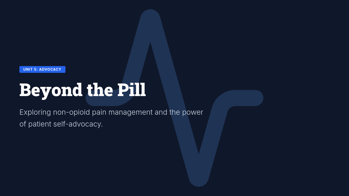 A comprehensive 12th-grade health sequence exploring the neurobiology of opioid addiction, the physiological progression of dependency, the dangers of synthetic opioids like fentanyl, and practical strategies for prescription safety and non-opioid pain management.
