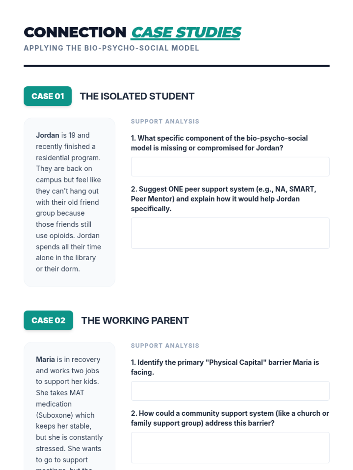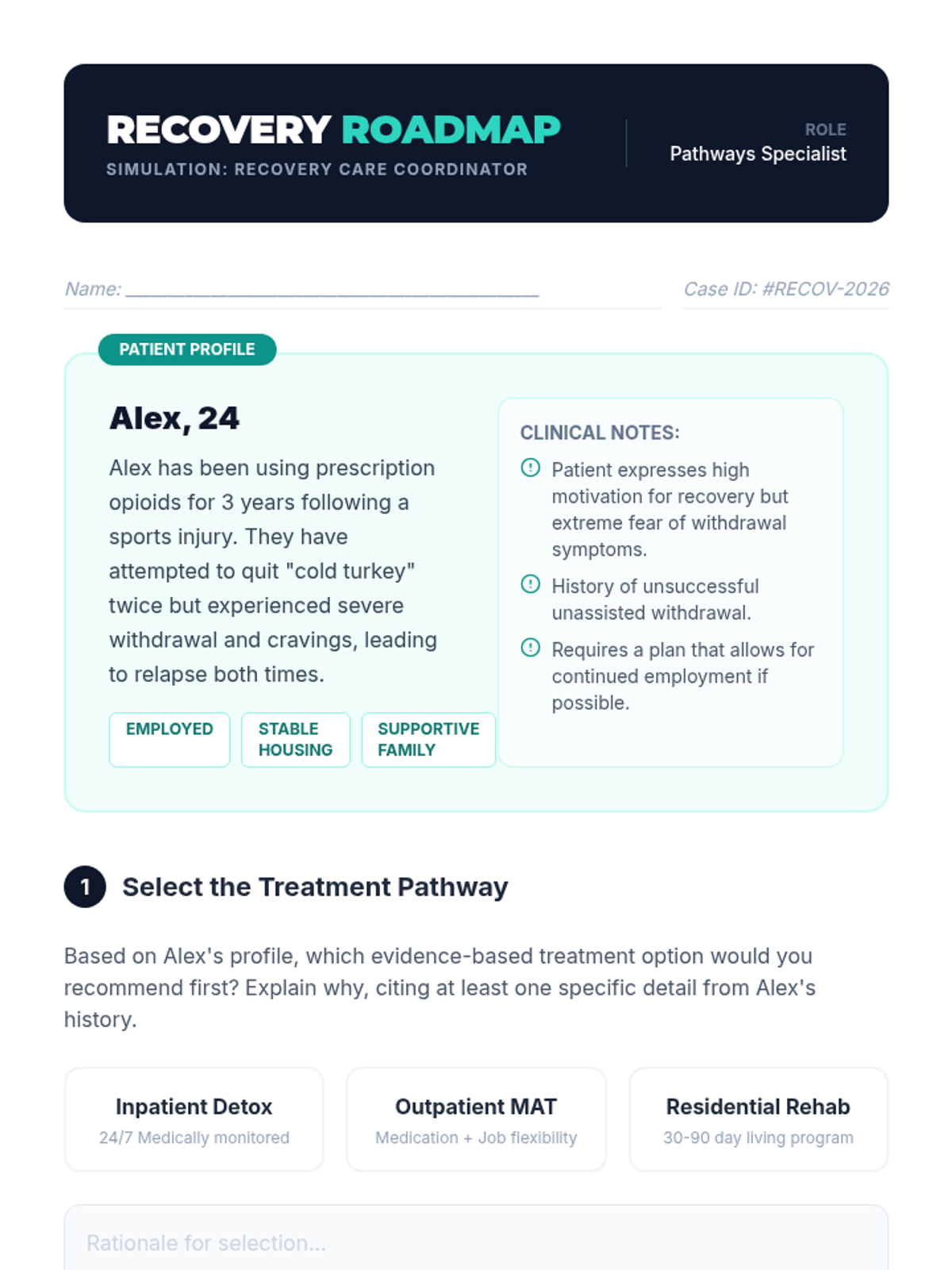 A 10th-grade Health sequence focused on destigmatizing opioid use disorder, understanding recovery pathways, and mapping community resources to support long-term wellness.