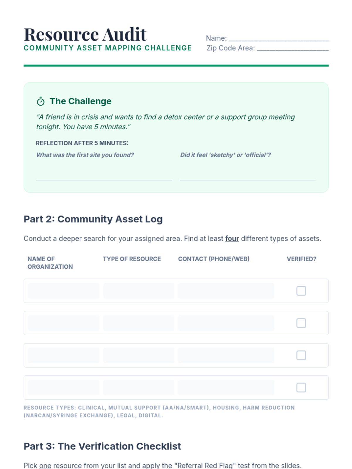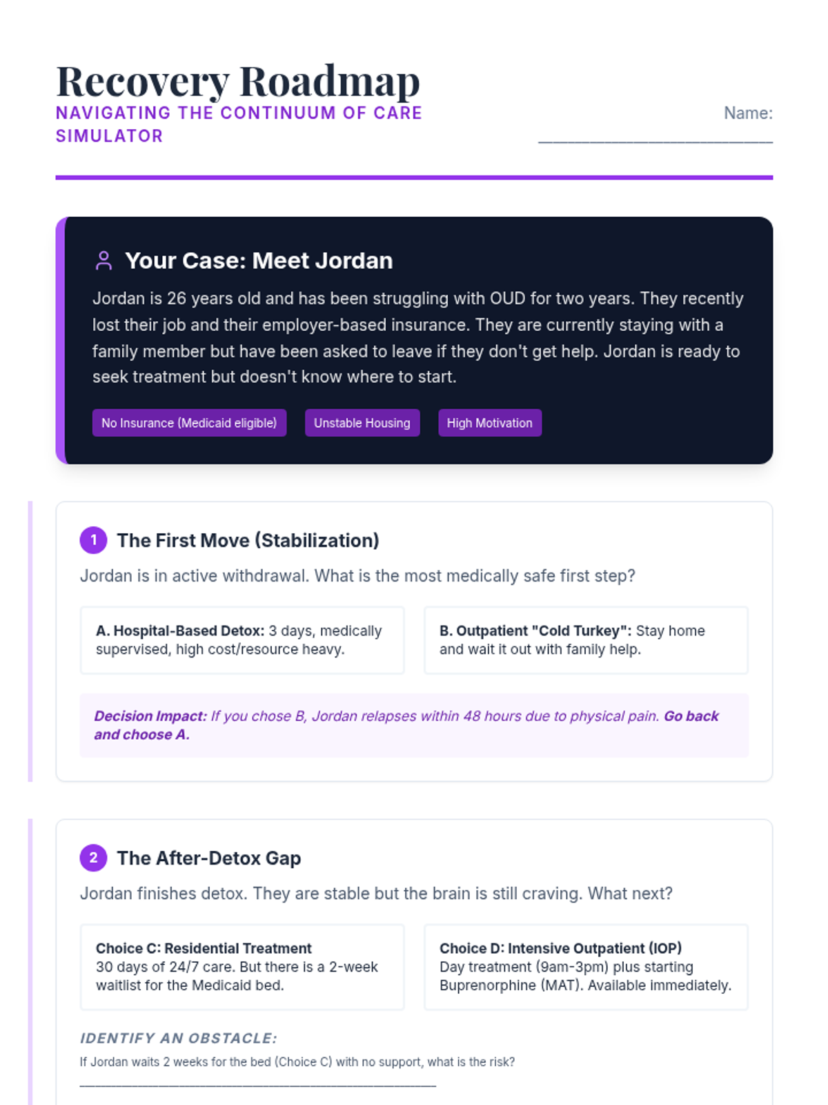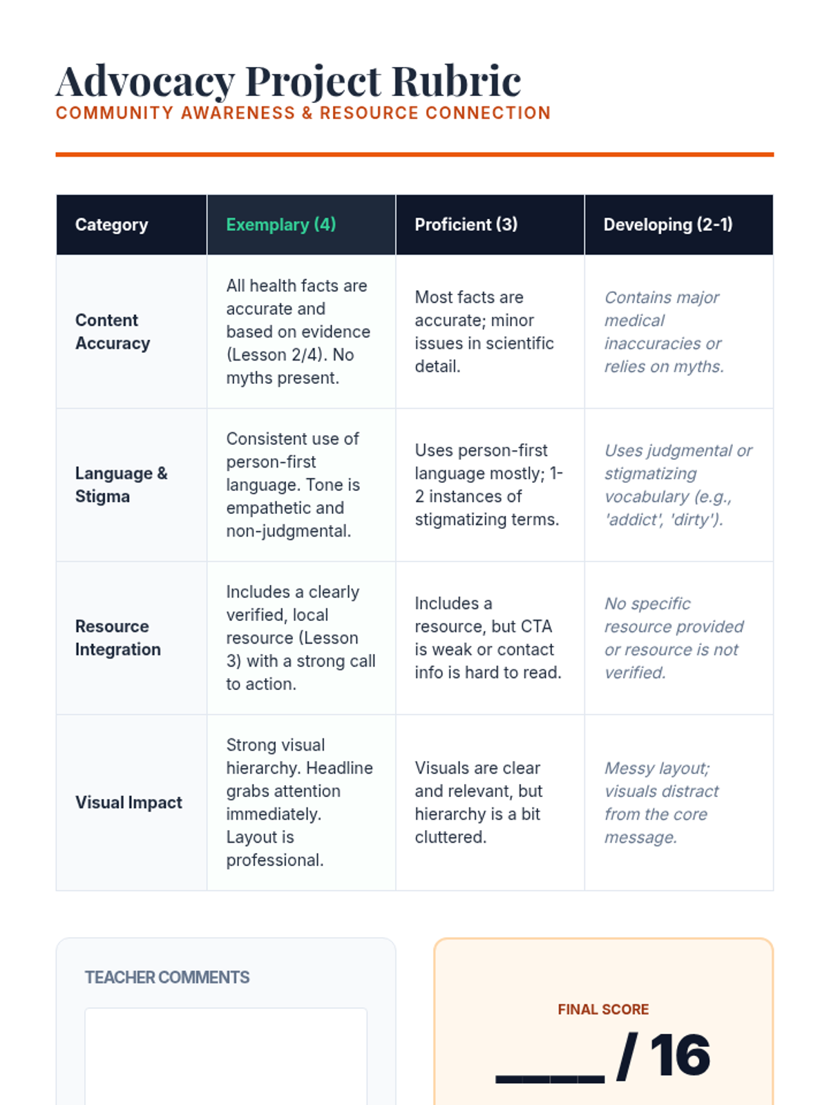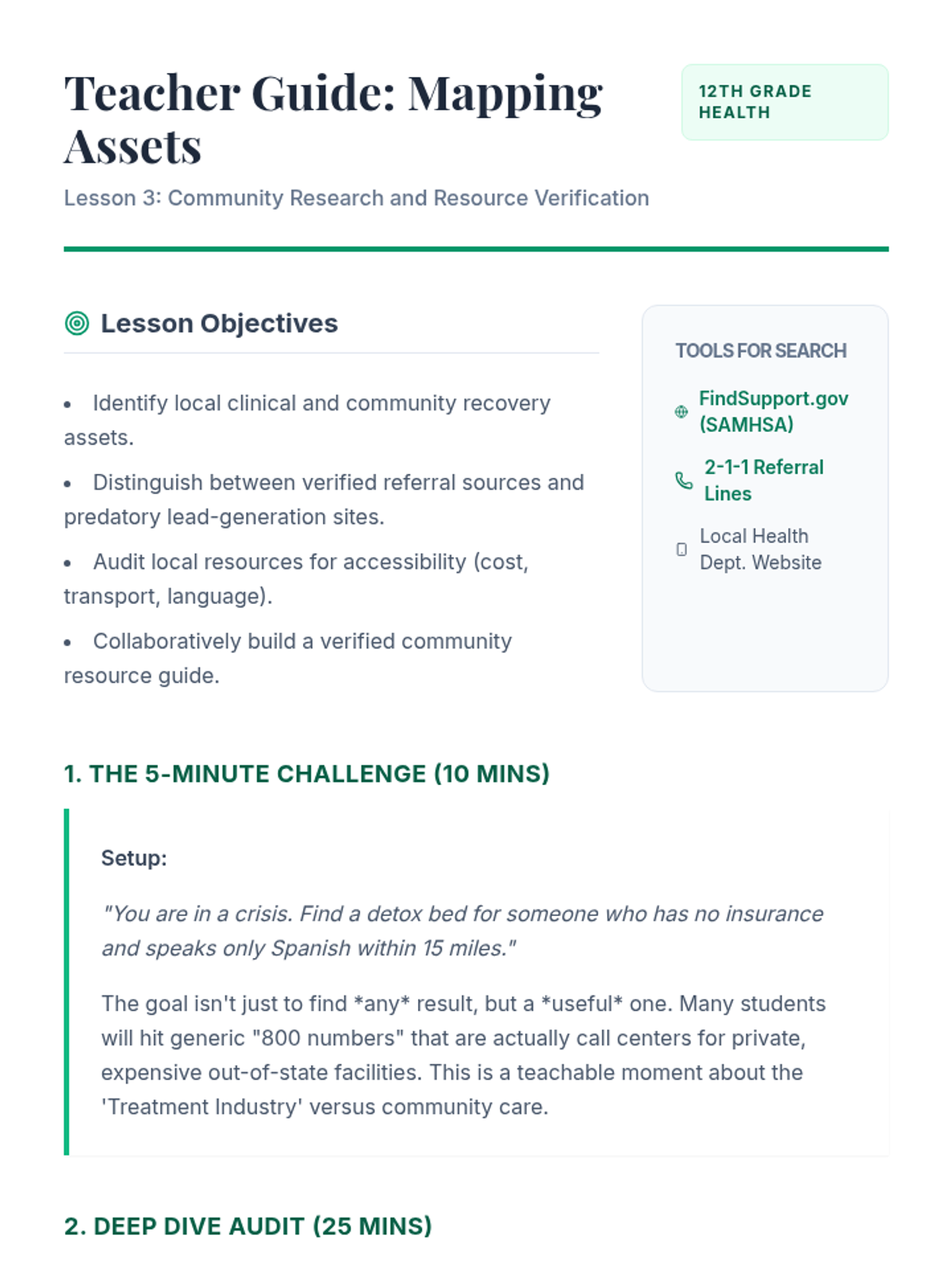 This 12th-grade sequence explores the social and community dimensions of the opioid crisis, focusing on reducing stigma and connecting individuals with recovery resources. Students analyze the impact of language, evaluate medical treatments like MAT, and map local recovery assets to create effective advocacy materials.