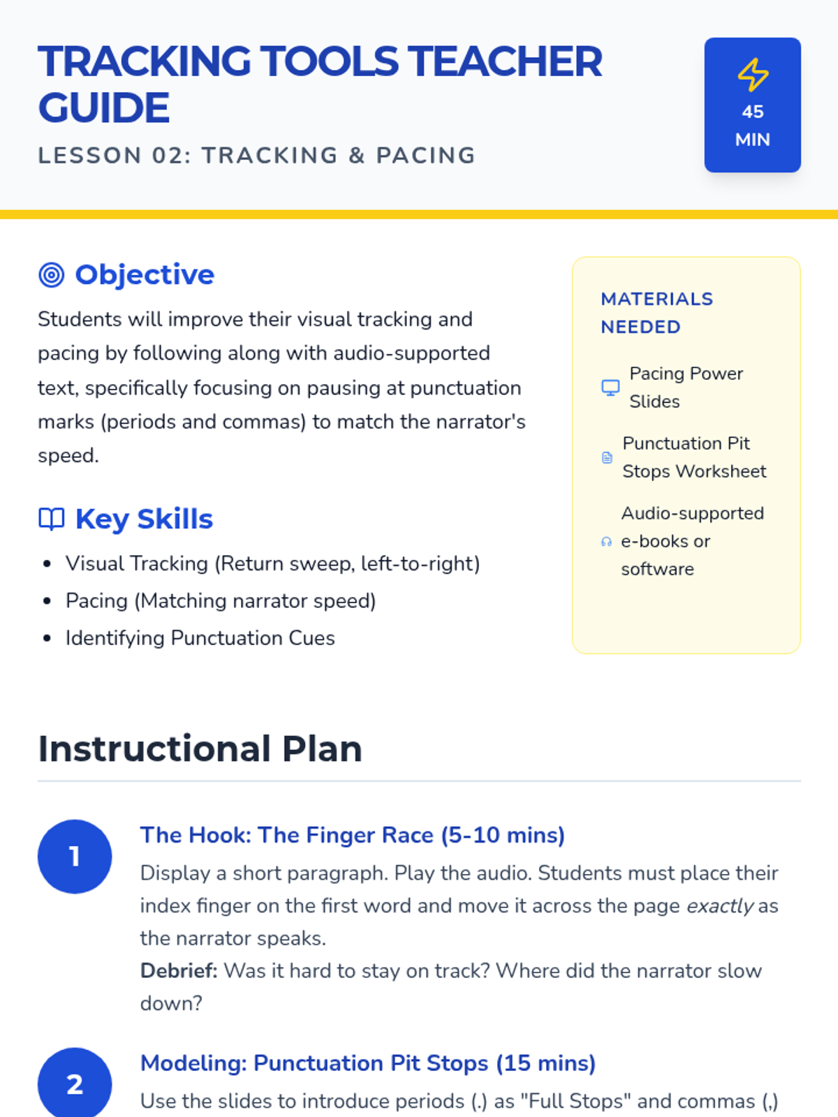 A comprehensive baseline reading assessment sequence designed for virtual tutoring environments. It includes tools for phonics screening, fluency checks, and comprehension evaluation to establish a student's starting point.