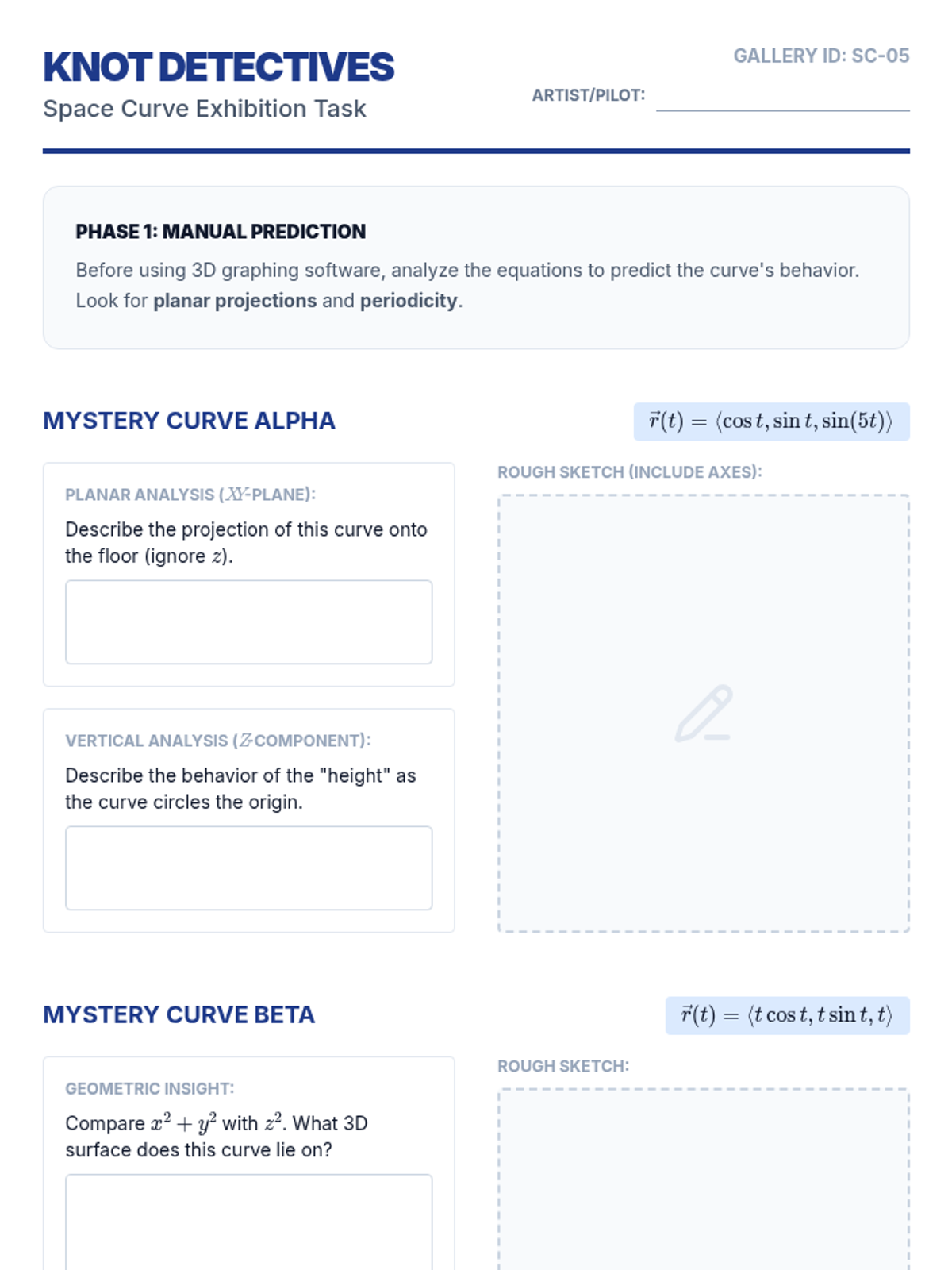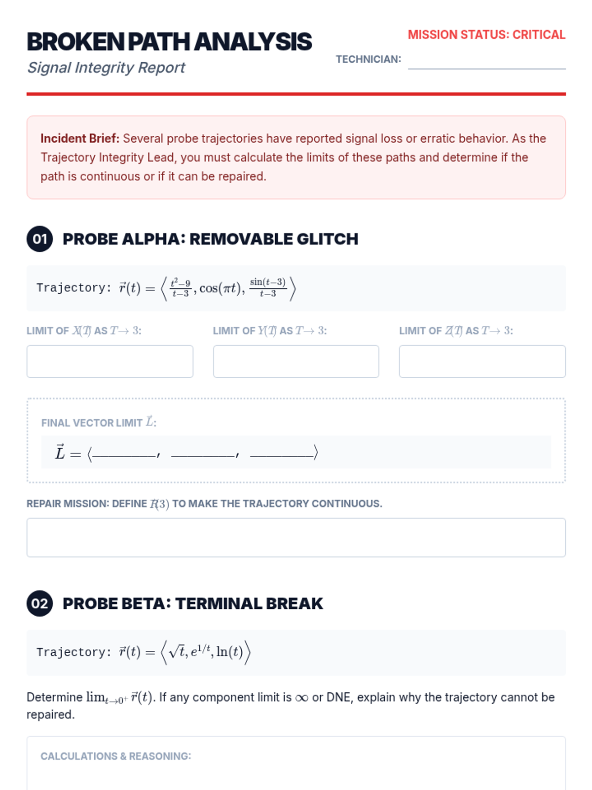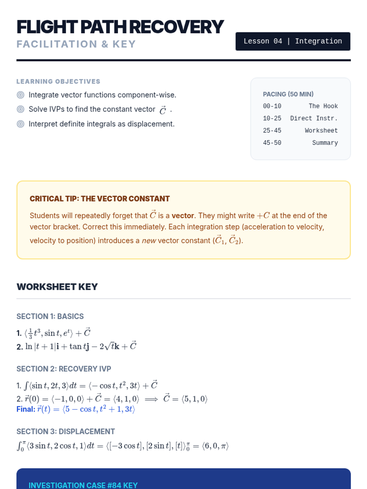 This foundational sequence introduces 12th-grade calculus students to vector-valued functions, bridging parametric equations with 3D vector analysis through the lens of aerospace navigation. Students explore domains, limits, continuity, differentiation, and integration to model and visualize complex space curves.