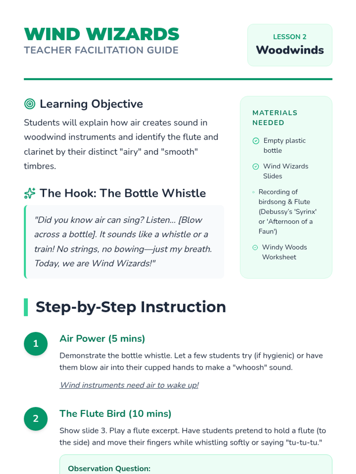 A Pre-K music sequence focusing on how instruments make sound through air and vibration, exploring pitch, and introducing early music literacy through iconic notation. Students move from physical investigation to creative composition.
