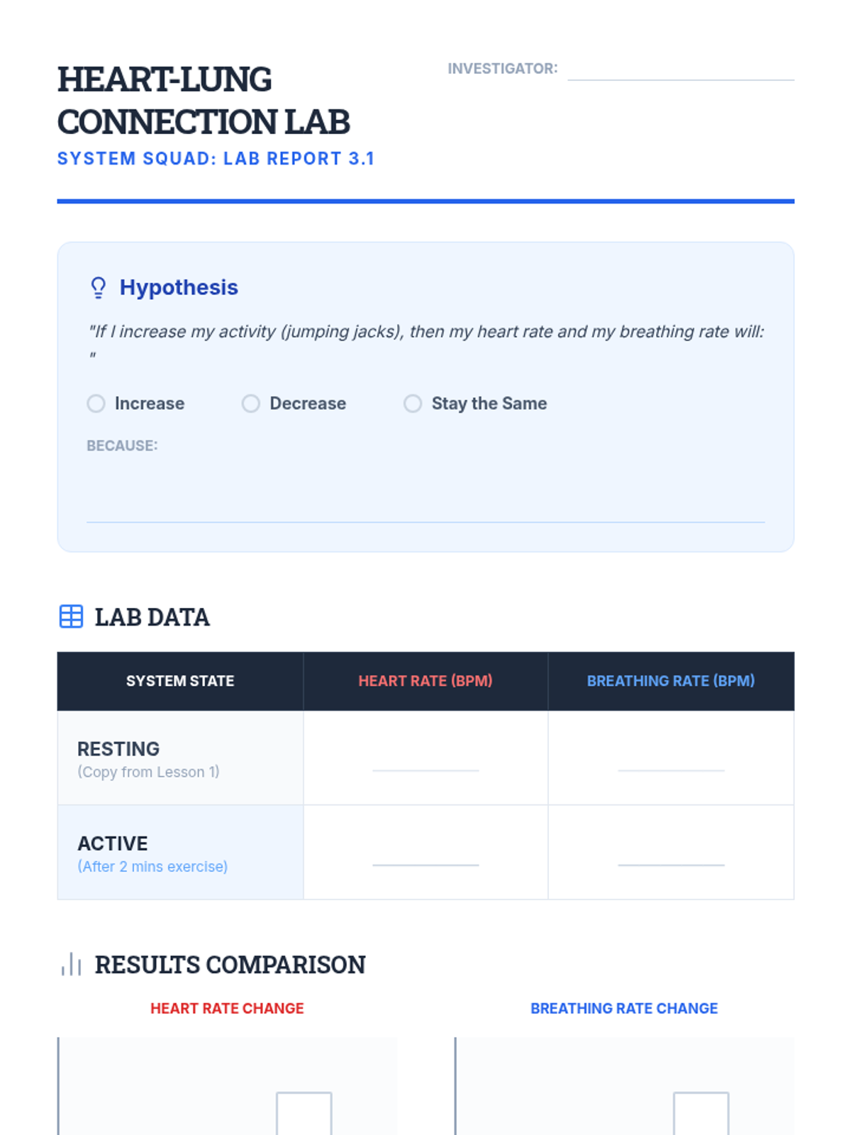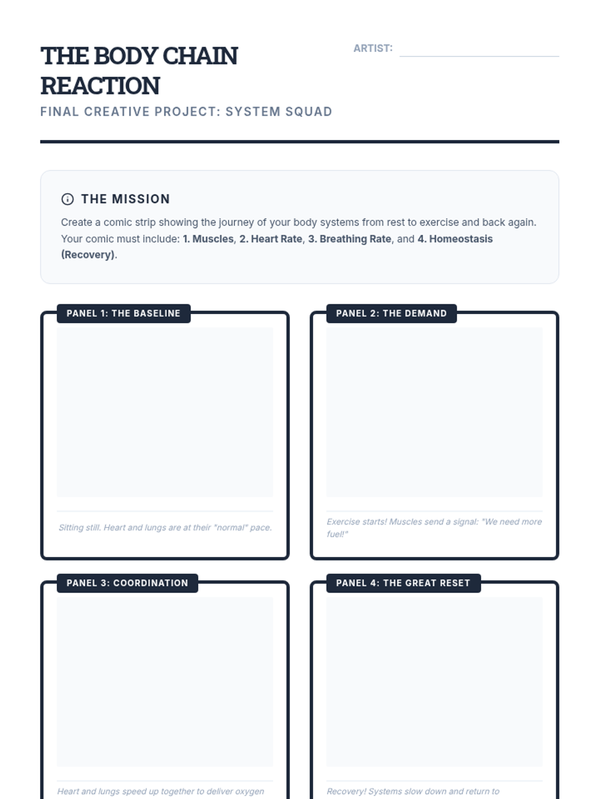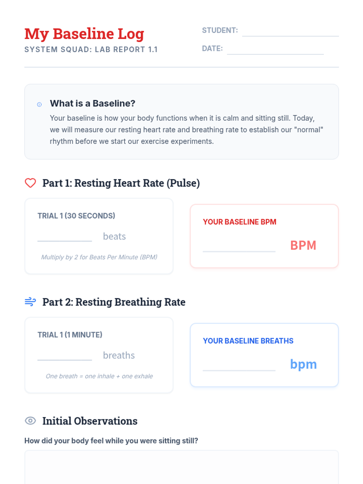 A 5-lesson unit for 4th graders exploring how the circulatory, respiratory, and muscular systems coordinate during exercise to maintain homeostasis. Students progress from measuring resting baselines to analyzing recovery times and creating systems models.