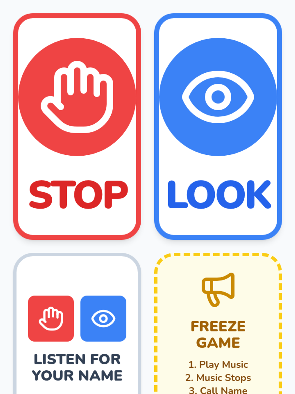 This sequence helps Pre-K students with working memory challenges use visual cues to follow single-step directions. It progresses from basic object-picture matching to independent task completion using visual action cards.