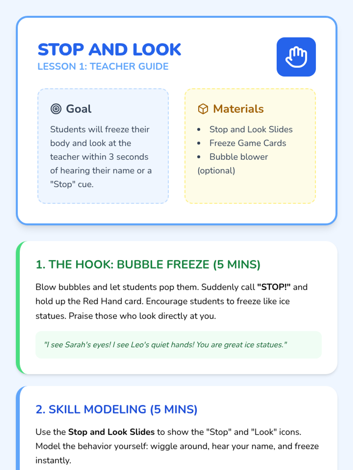 A comprehensive sequence designed for Pre-K students to develop interoception skills and functional communication for requesting breaks. Students learn to recognize high-energy body states and use a visual break card to self-regulate.