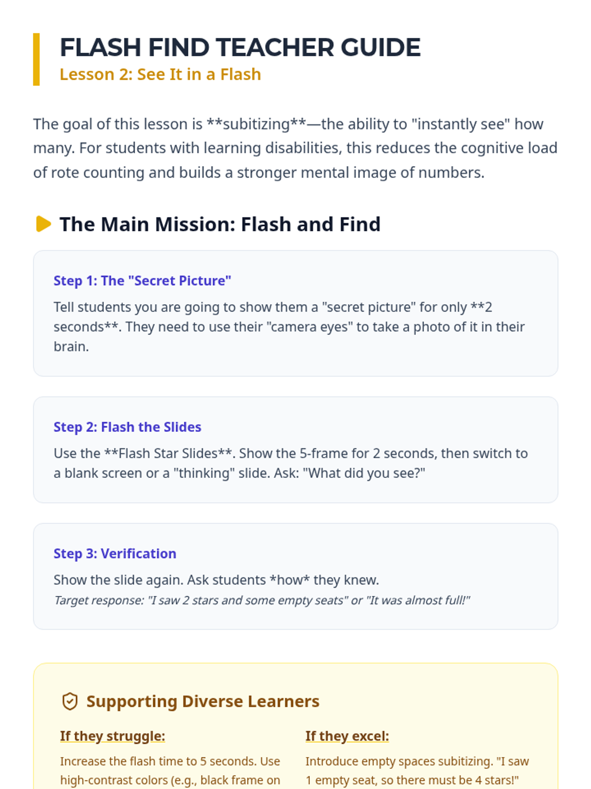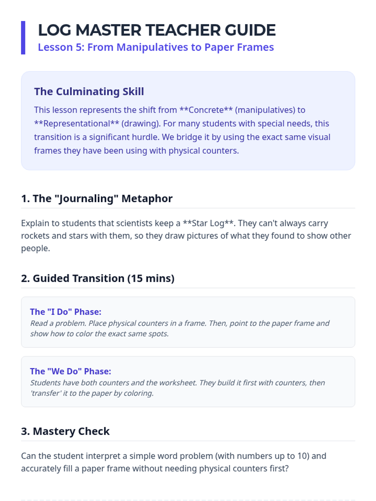 A comprehensive math sequence for Kindergarten Special Education students, using space-themed visual scaffolds (Five-Frames and Ten-Frames) to build foundational number sense, subitizing skills, and early addition strategies.