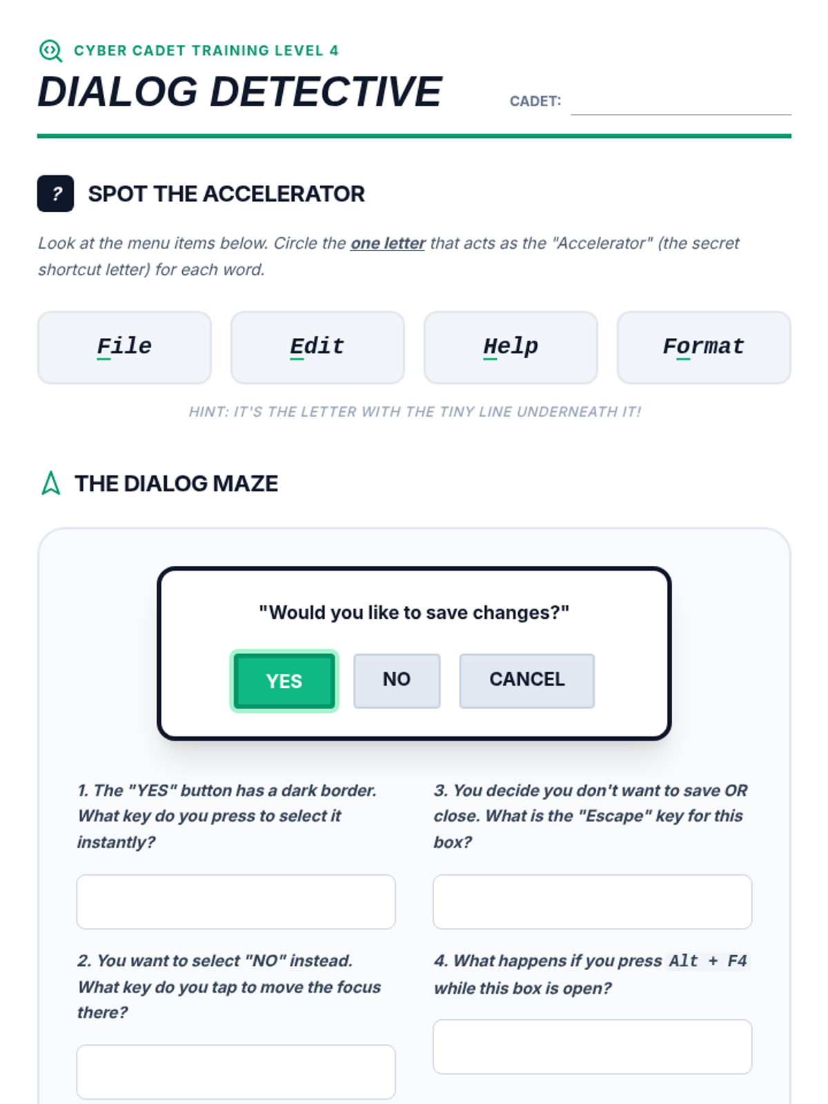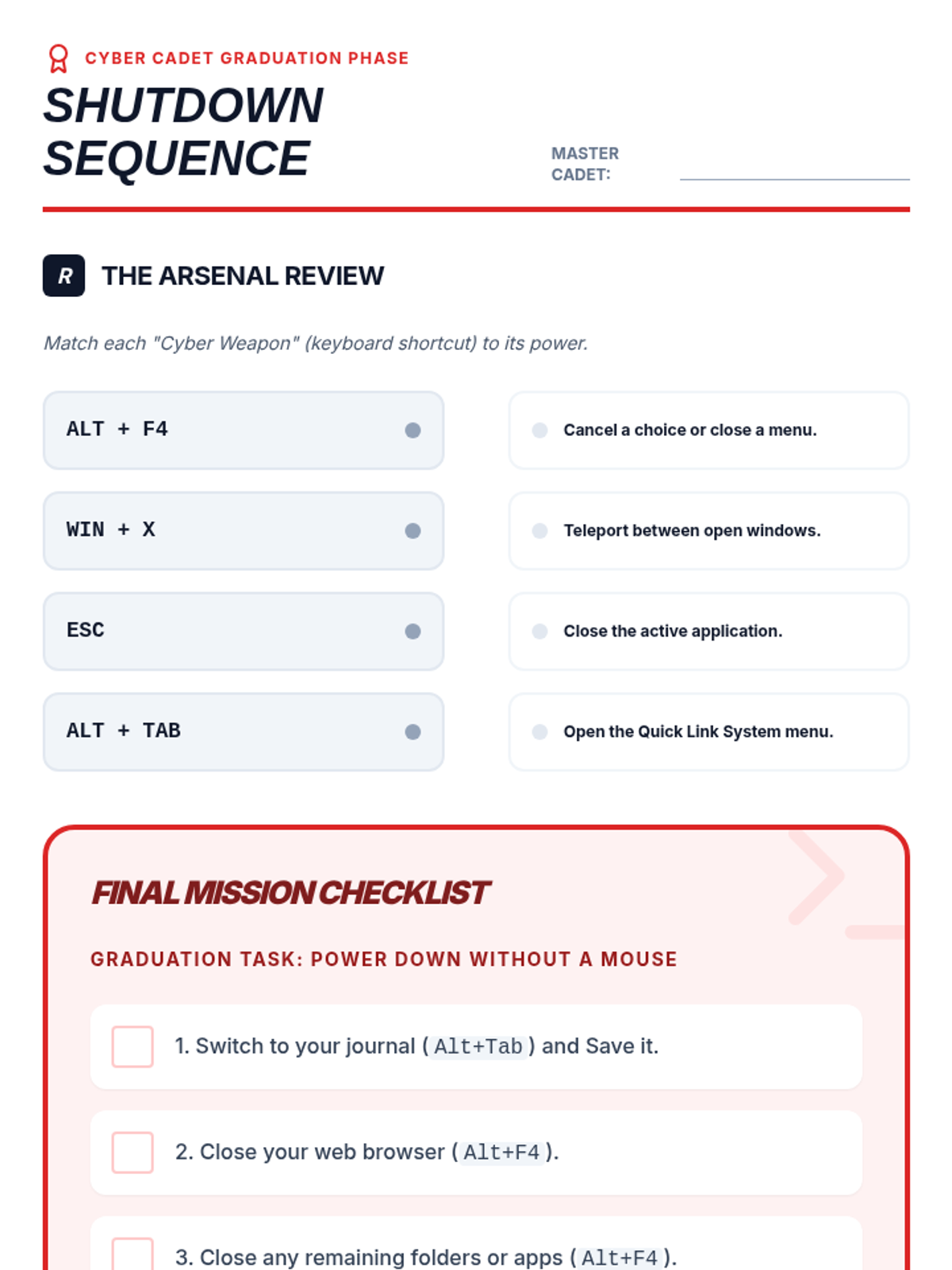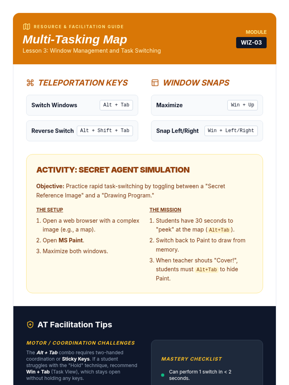 A 5-lesson sequence for 5th-grade students focusing on assistive technology keyboard shortcuts to navigate computer interfaces without a mouse, empowering students with motor impairments to access technology independently.