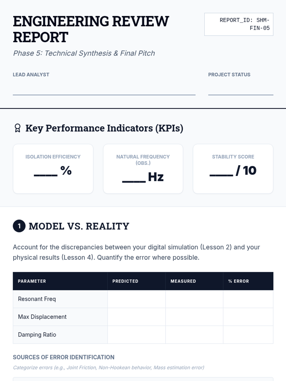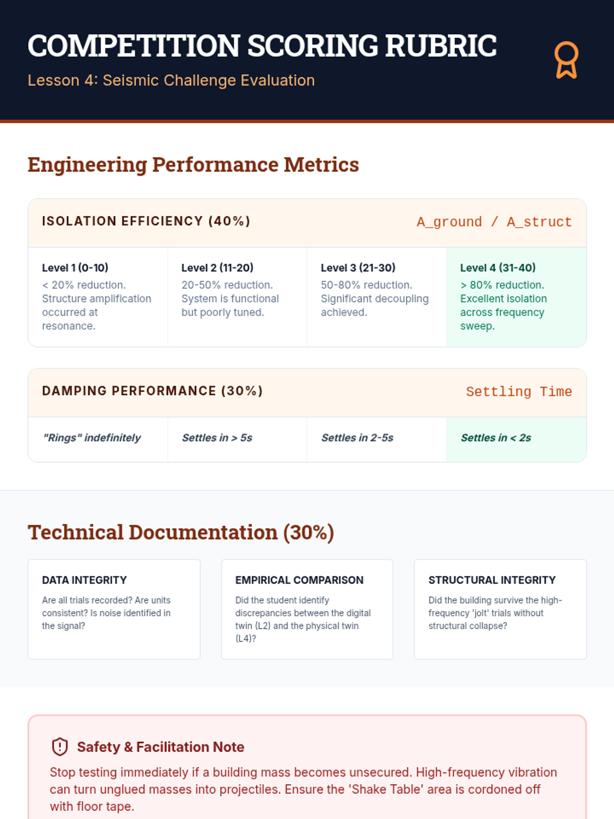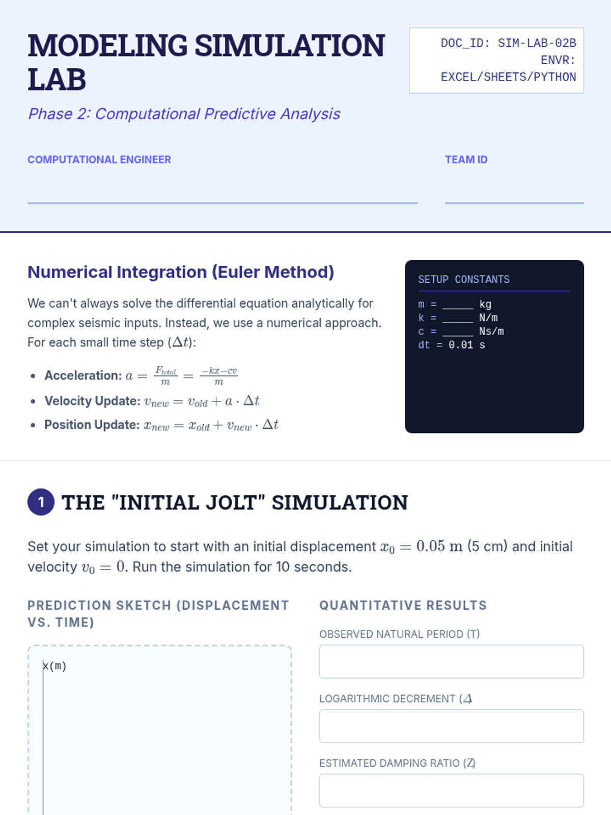 A high-level physics and engineering sequence where 12th-grade students design, model, and test seismic isolation systems. Students apply Simple Harmonic Motion (SHM) principles to solve real-world structural engineering challenges.