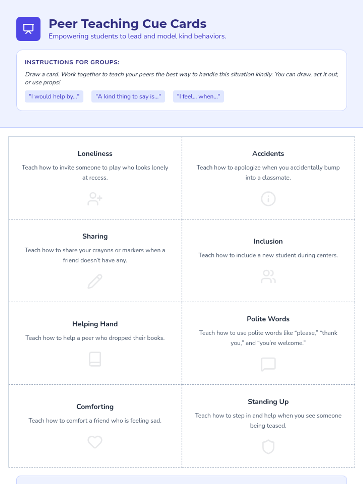 A kindergarten social-emotional learning unit focused on the fundamentals of respect, specifically using kind words and taking care of shared school environments.