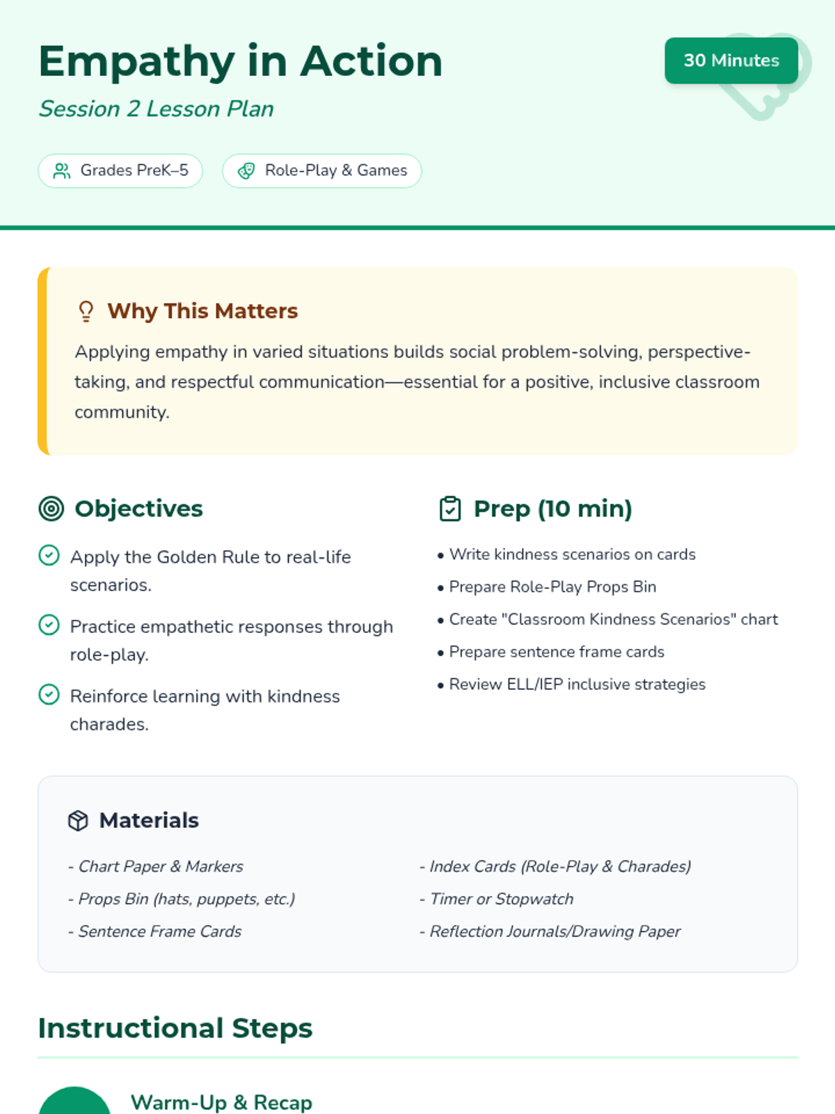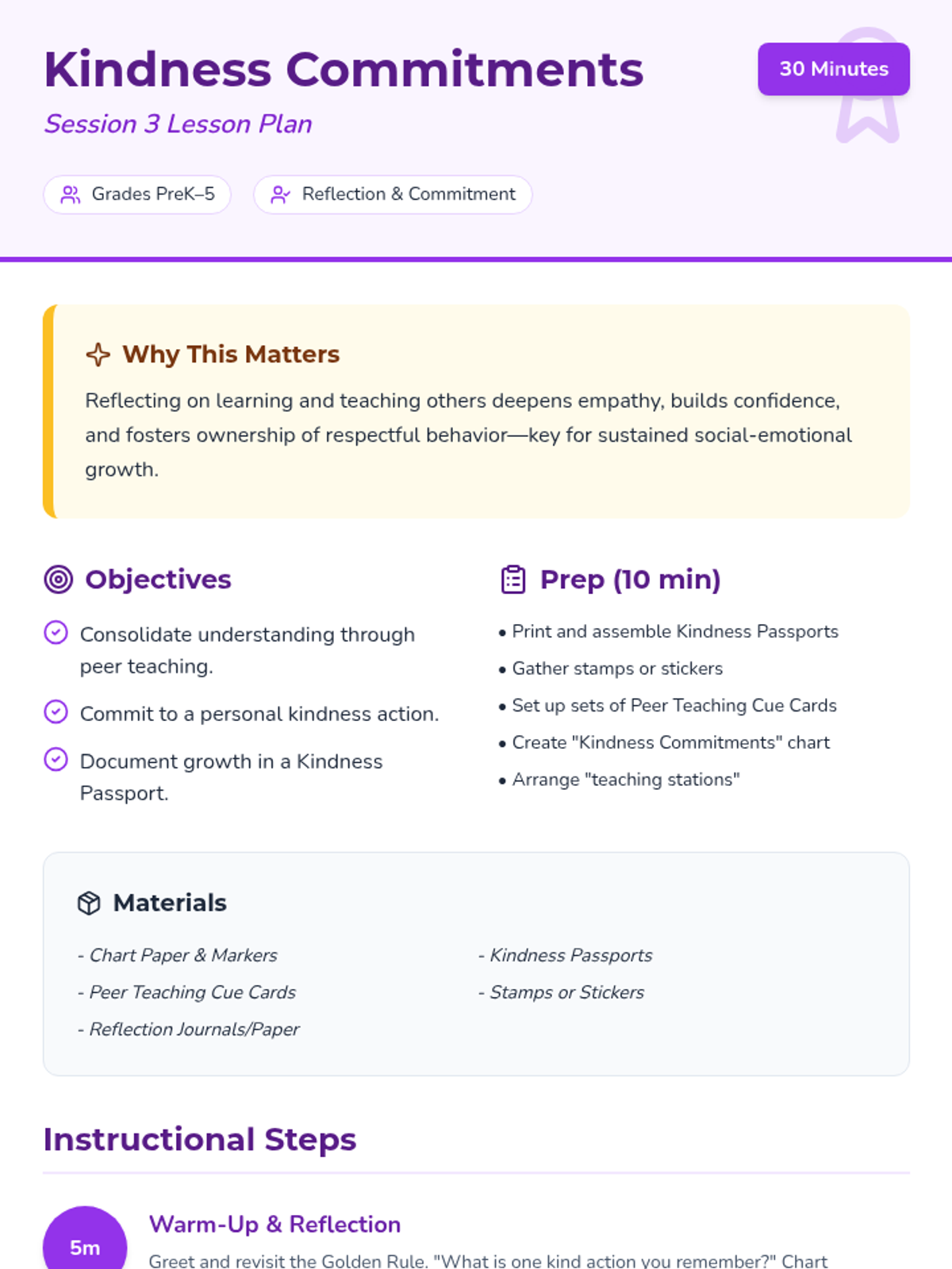 A 6-week Social-Emotional Learning series for fifth graders focused on building empathy, kindness, and assertive communication skills. Rooted in ASCA standards and Conscious Discipline principles, the sequence guides students from understanding self-awareness to creating a classroom culture of inclusion.