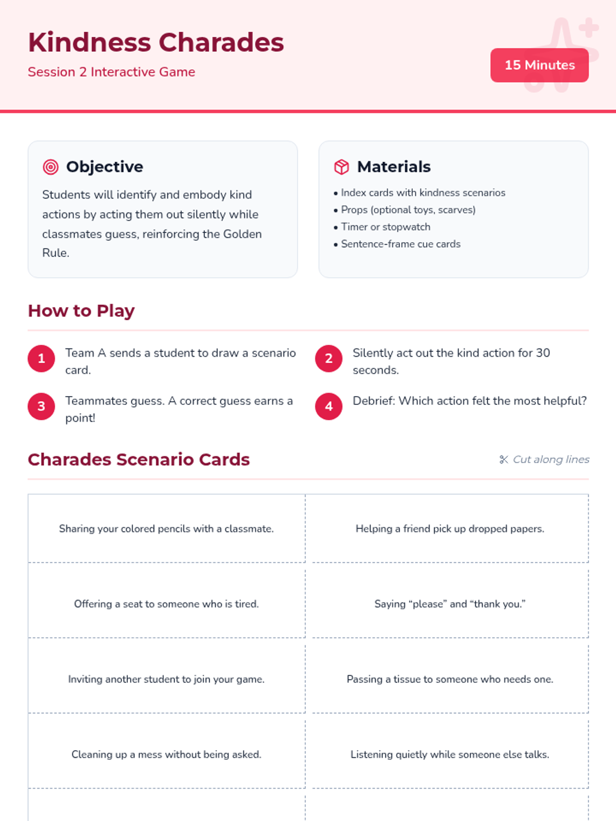 A three-session social-emotional learning unit for PreK–5 focused on kindness, empathy, and the Golden Rule, inspired by Laurie Keller’s 'Do Unto Otters'.