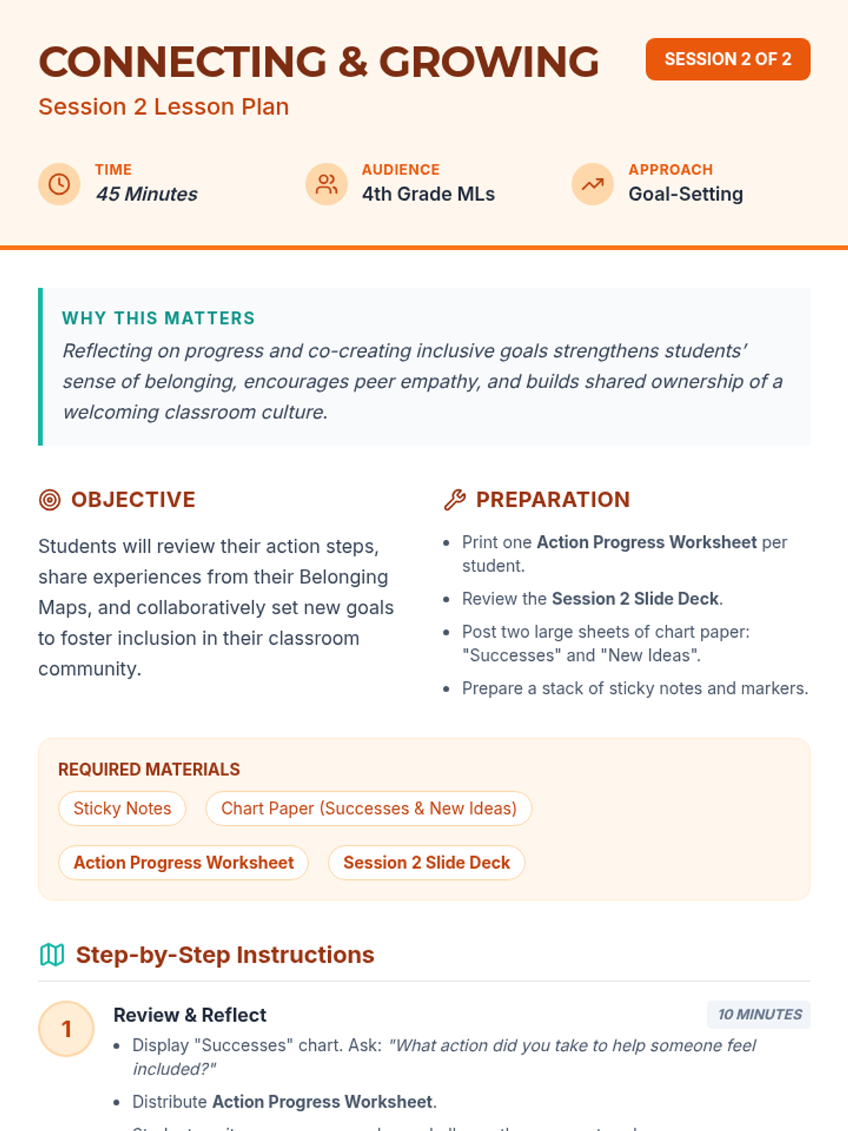 A 2-session lesson sequence for 4th grade multilingual students to explore personal belonging, map their experiences, and foster a more inclusive classroom culture through collaborative goal-setting.