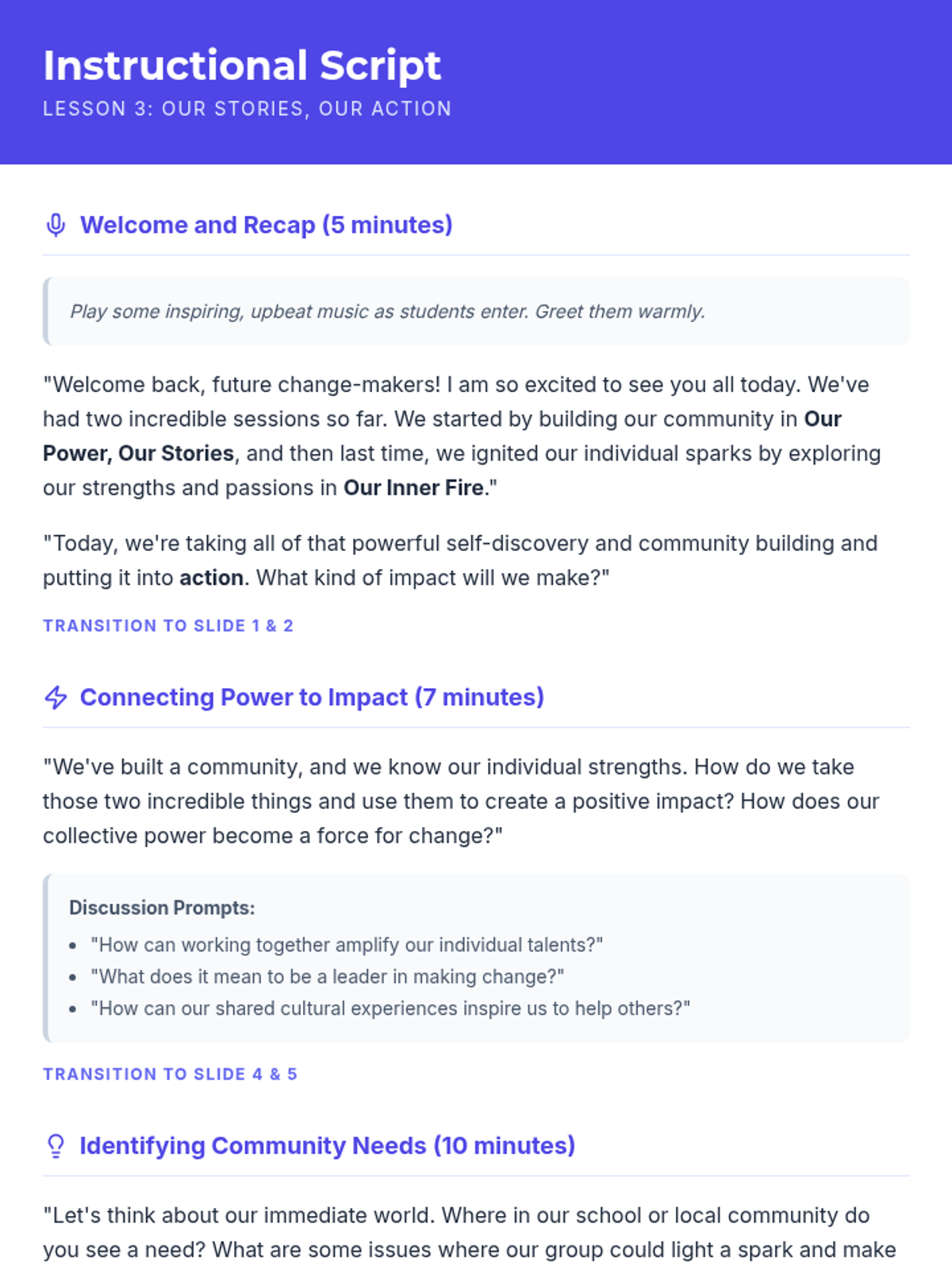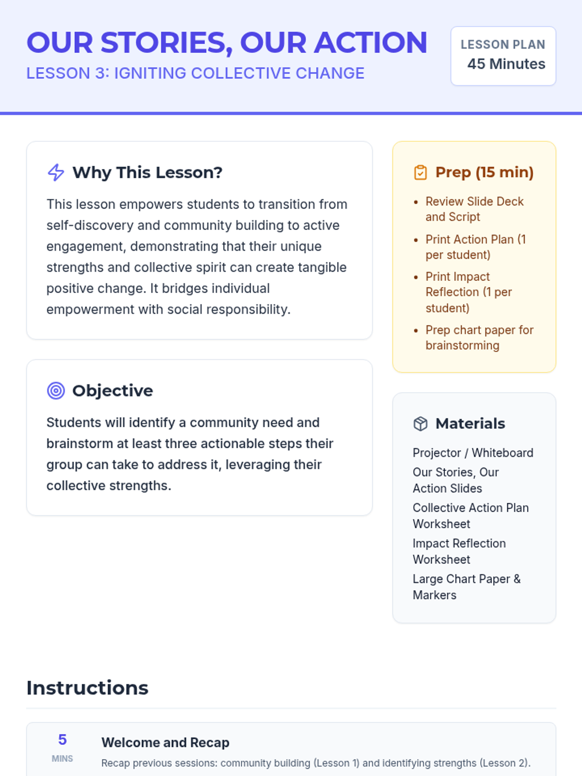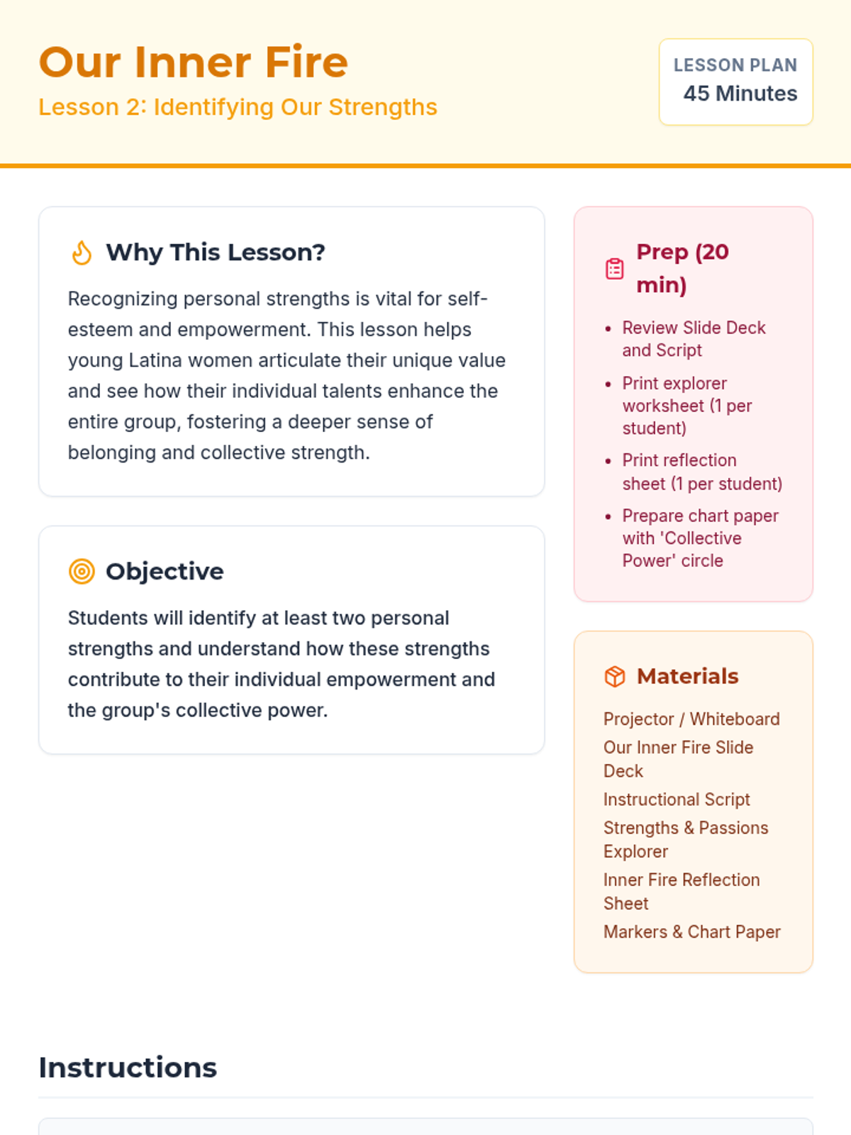 A three-session empowerment sequence for 10th-grade Latina girls, focusing on community building, identifying individual strengths, and taking collective action to impact their community.