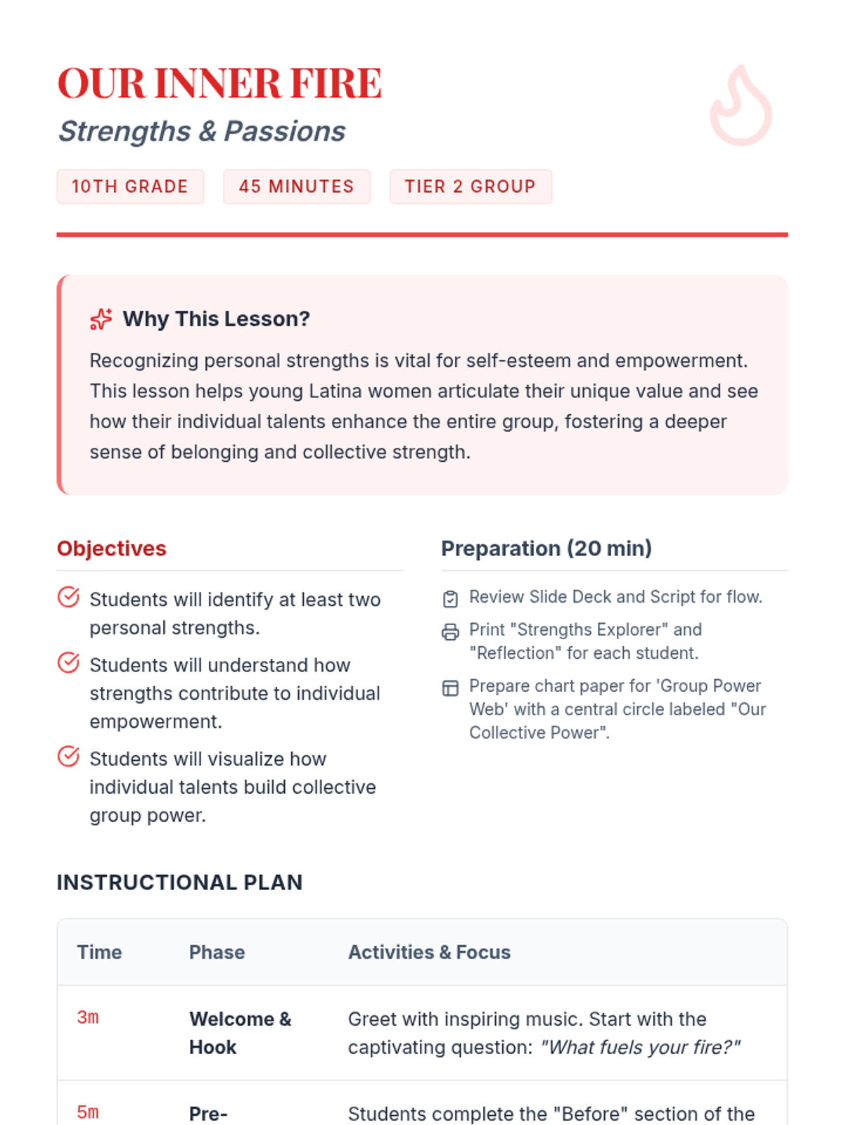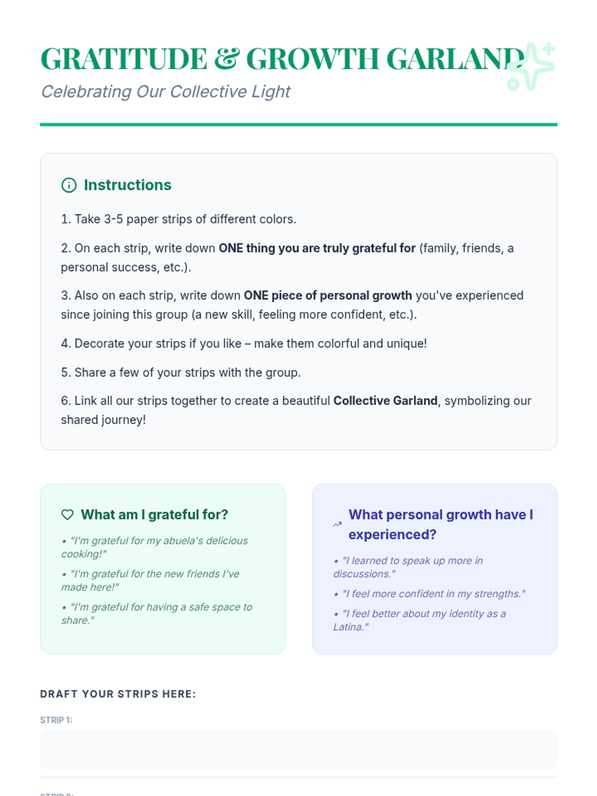 A four-part empowerment sequence for 10th-grade Latina students focused on building community, identifying strengths, taking collective action, and practicing gratitude.