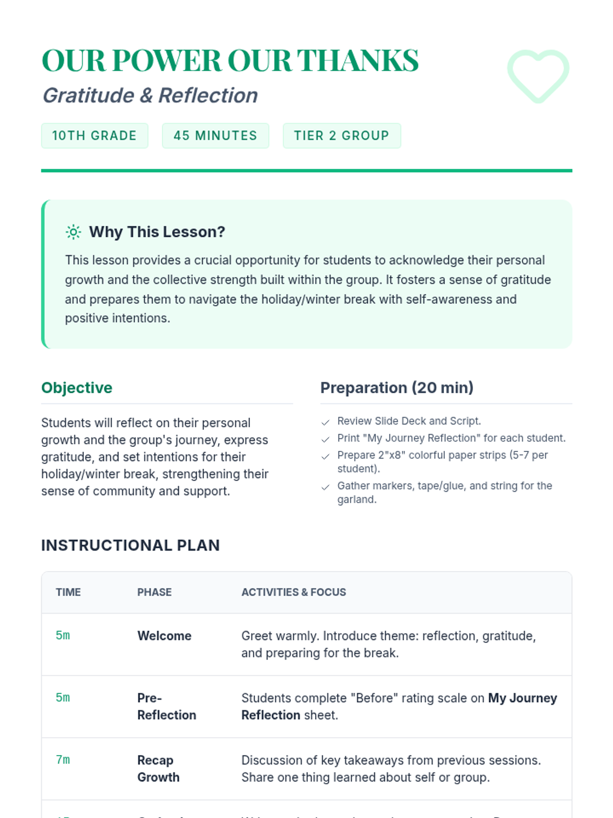 A 4-session small group counseling program for high school girls focused on identifying anxiety triggers, practicing mindfulness, and developing a personalized toolkit of coping strategies. The sequence emphasizes peer support, empowerment, and practical application within the school environment.