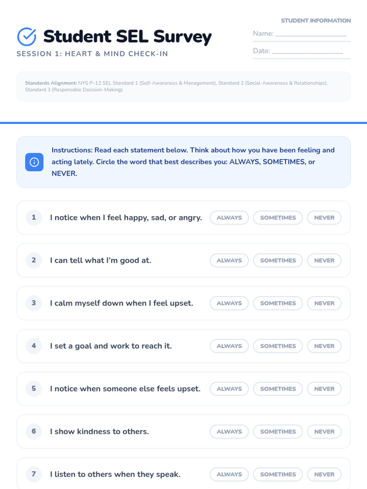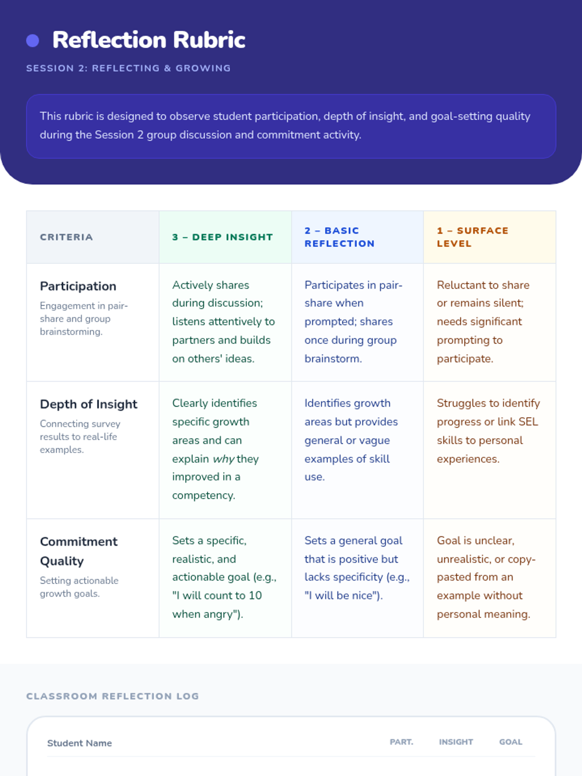A comprehensive sequence for K-3 students to build core self-awareness skills, including identifying emotions, recognizing personal strengths, and developing a growth mindset.