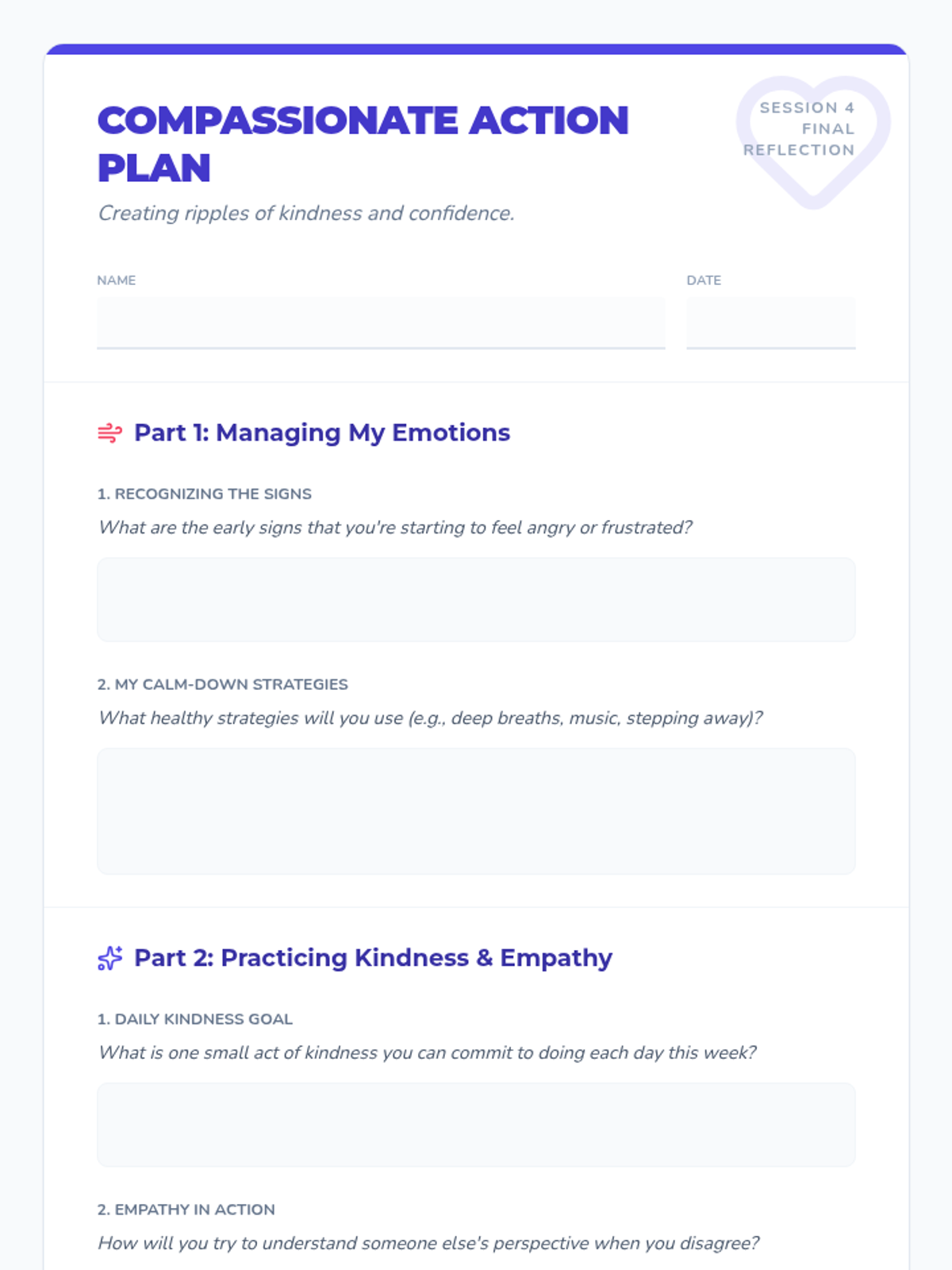 A 4-session small group counseling program for high school girls focused on identifying anxiety triggers, practicing mindfulness, and developing a personalized toolkit of coping strategies. The sequence emphasizes peer support, empowerment, and practical application within the school environment.