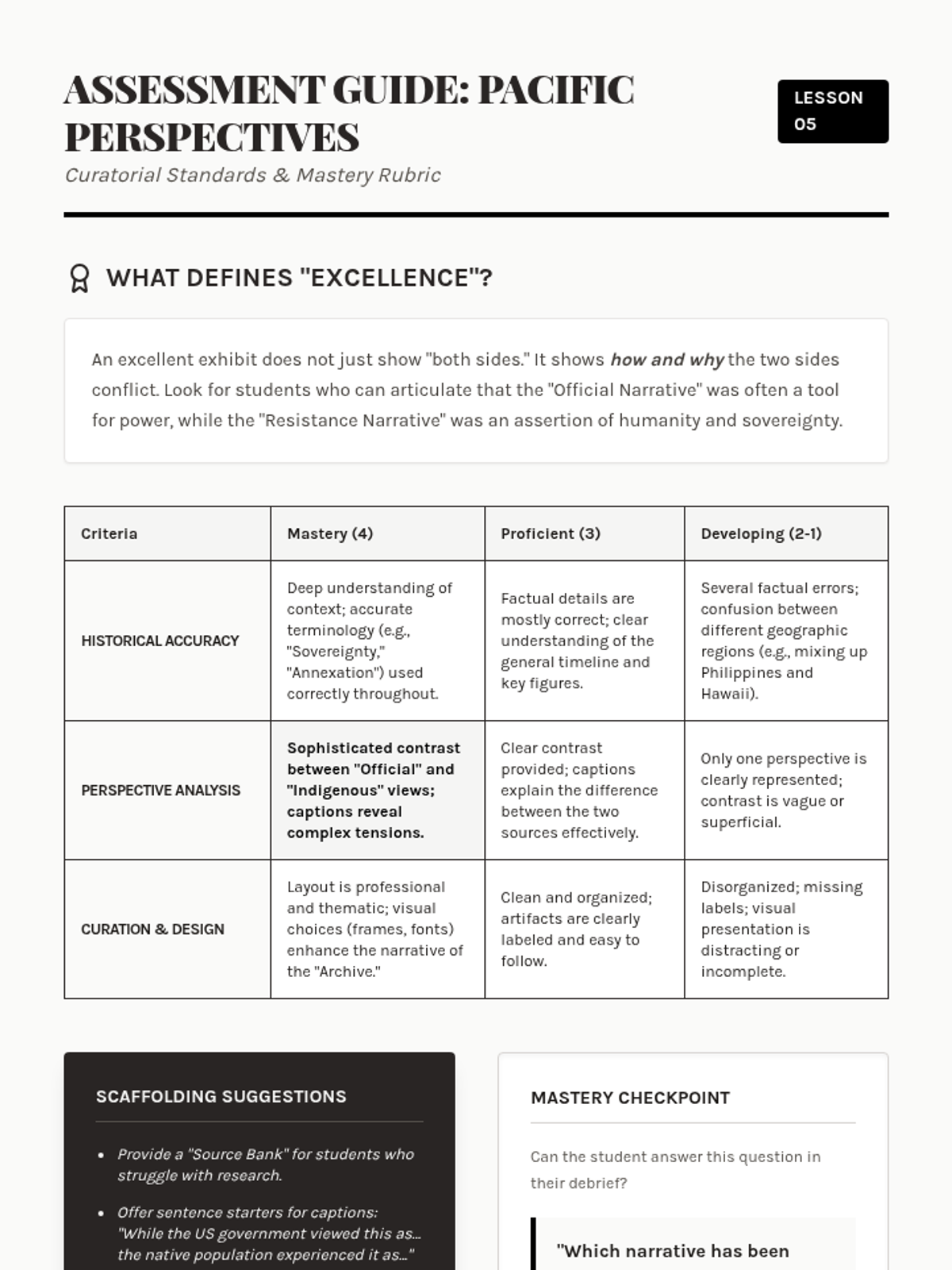 A 10th-grade history sequence examining US imperialism in the Pacific, focusing on Hawaii, the Philippines, and China through the lens of indigenous resistance and American expansionist policy.