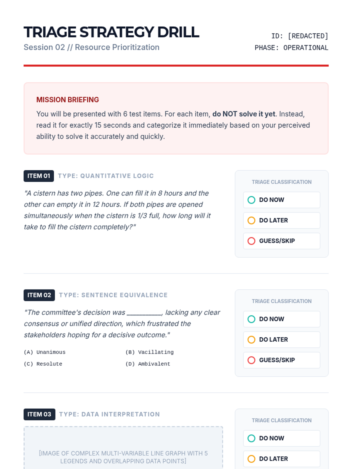 A comprehensive graduate-level sequence focused on the psychological and logistical aspects of high-stakes testing, including time management, anxiety reduction, and strategic decision-making.