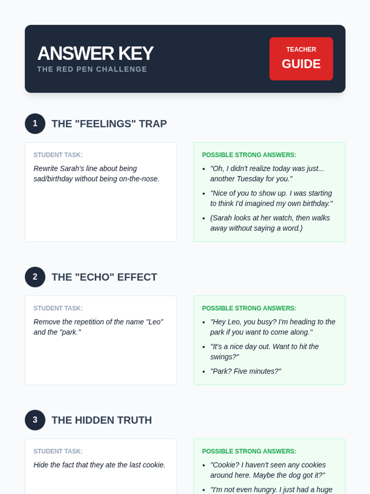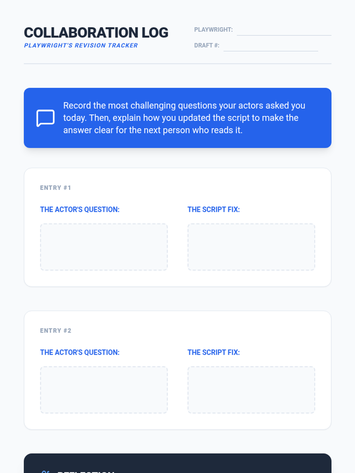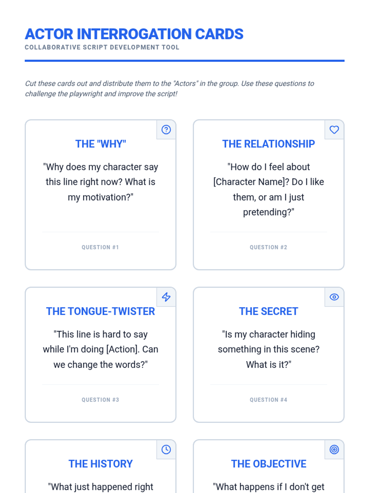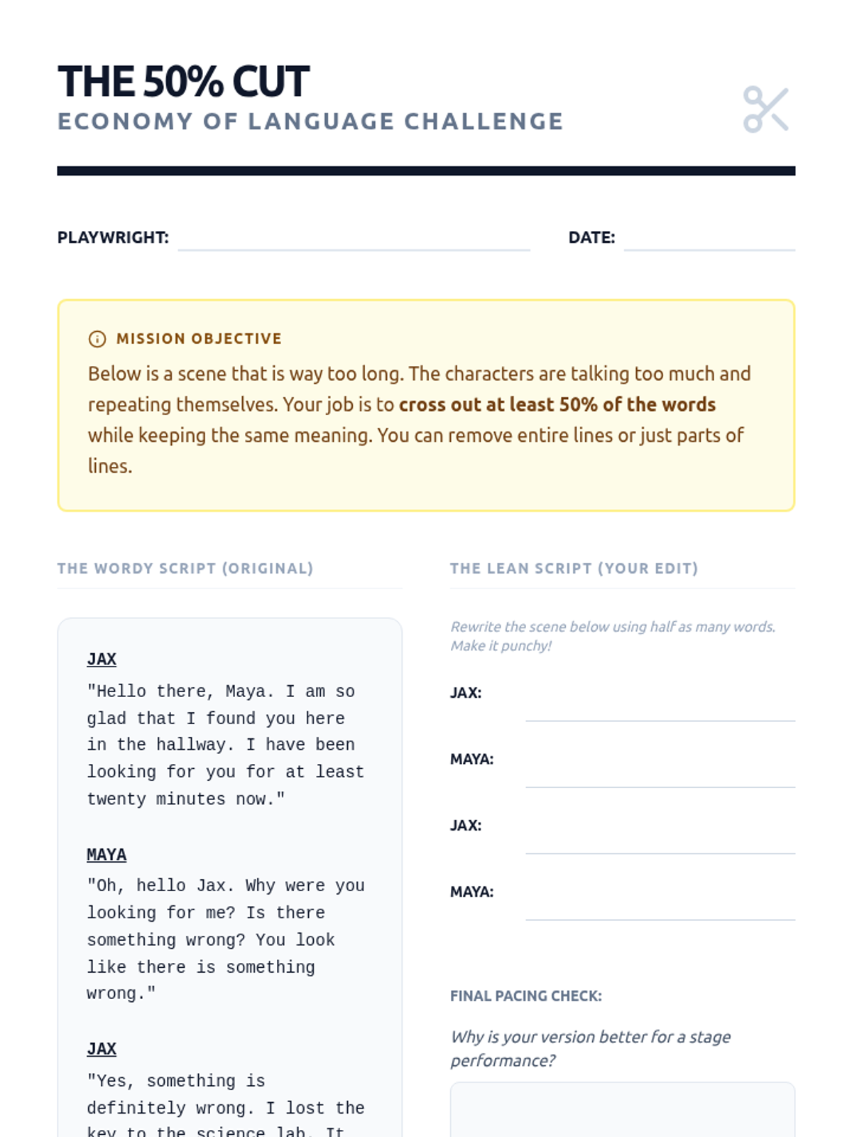 A 5-lesson sequence for 5th-grade students focusing on the iterative process of playwriting, from the first table read to a final, polished performance-ready script. Students develop skills in auditory analysis, dialogue refinement, conciseness, and collaboration.